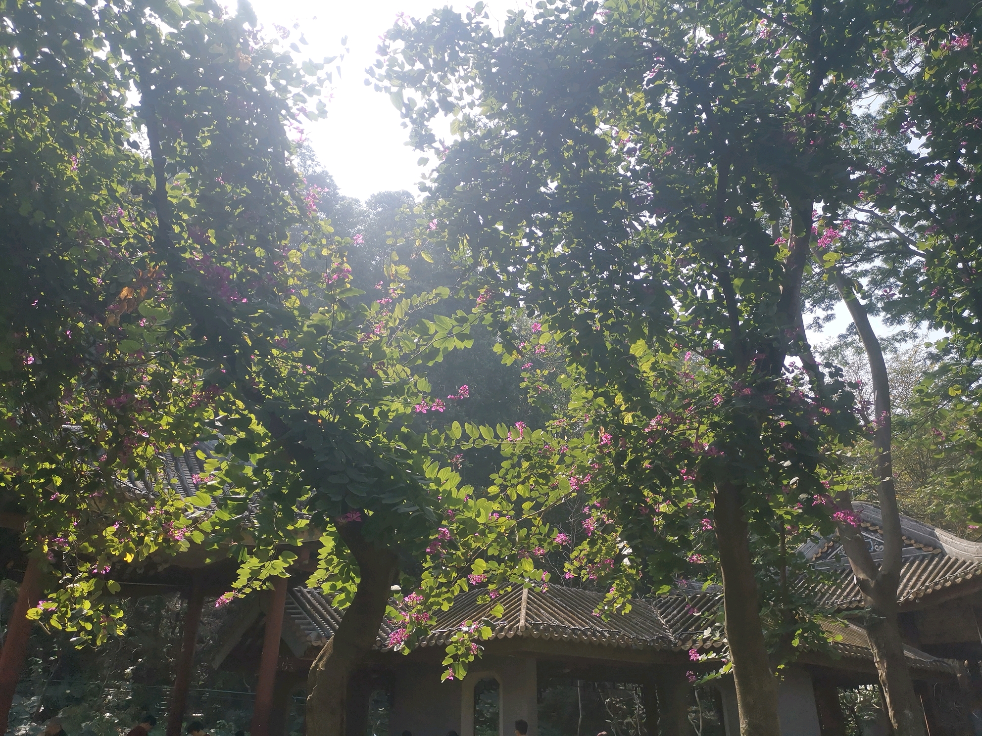 问了当地的司机师傅,说街道两边的是紫荆树,全是盛放的紫荆花。