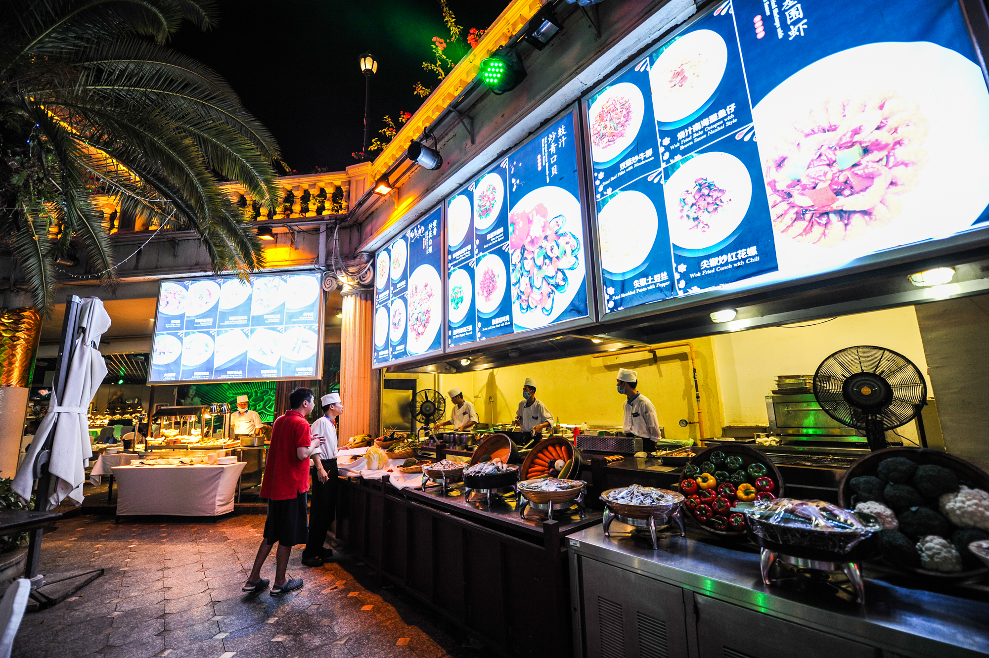 三亚亚龙湾百花谷百花夜宴属于亚龙湾华宇度假酒店旗下的一家小资类型的自助式餐厅,这样的餐厅与三亚其他餐厅不一样的是在于这样的自助式餐厅是在室外而且在就餐的时候有丰富多彩的演出,也就是说可以一边吃海鲜自助餐一边欣赏节目演出,这样的海鲜自助式晚餐在三亚应该为数不多的了吧?