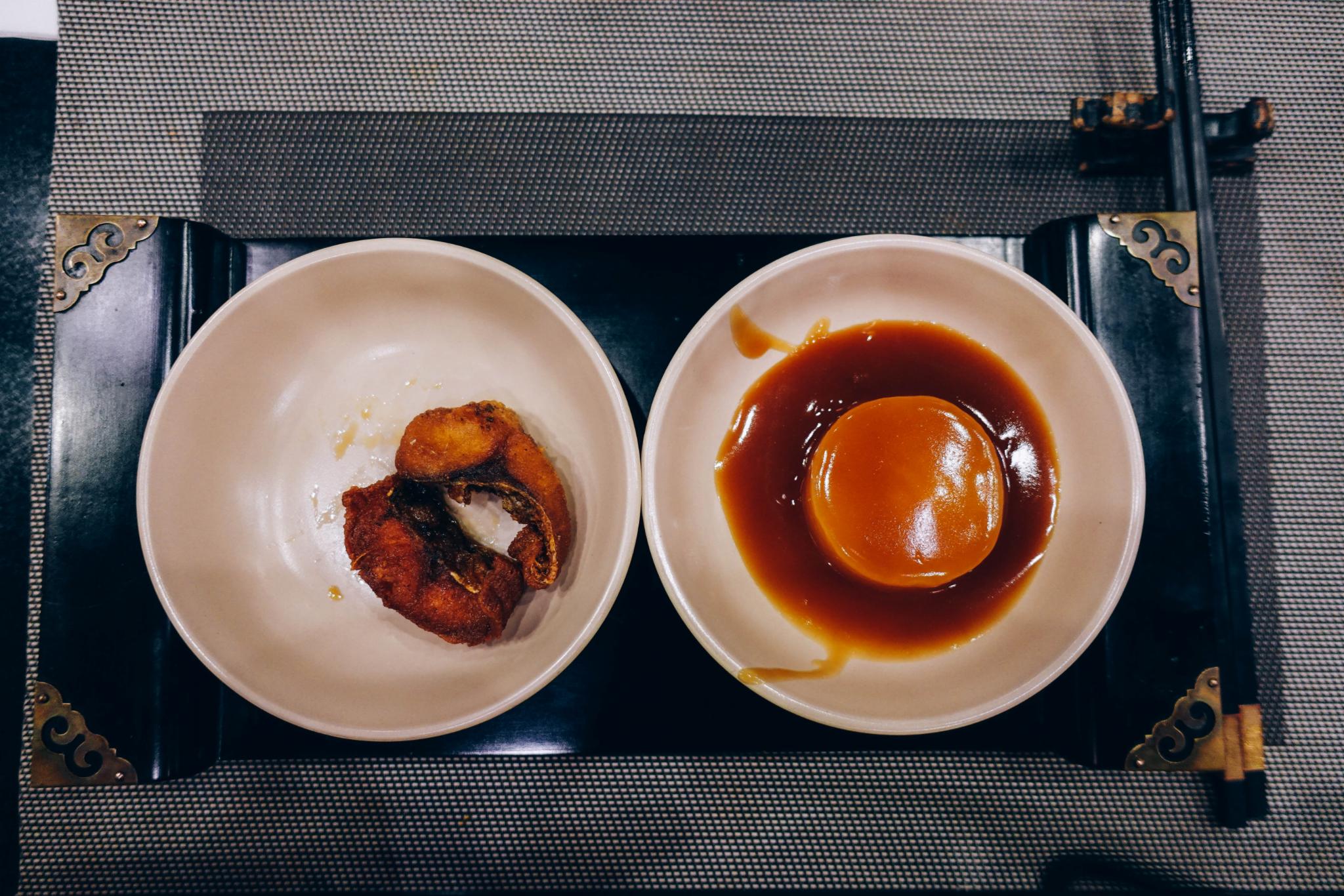 这些菜名大多和秦时有关,取得很文艺,也有一些有典故,不过这两道菜世纪上一个是萝卜一个是熏鱼,熏鱼是甜口的,萝卜倒是高汤吊出来的很是鲜美。