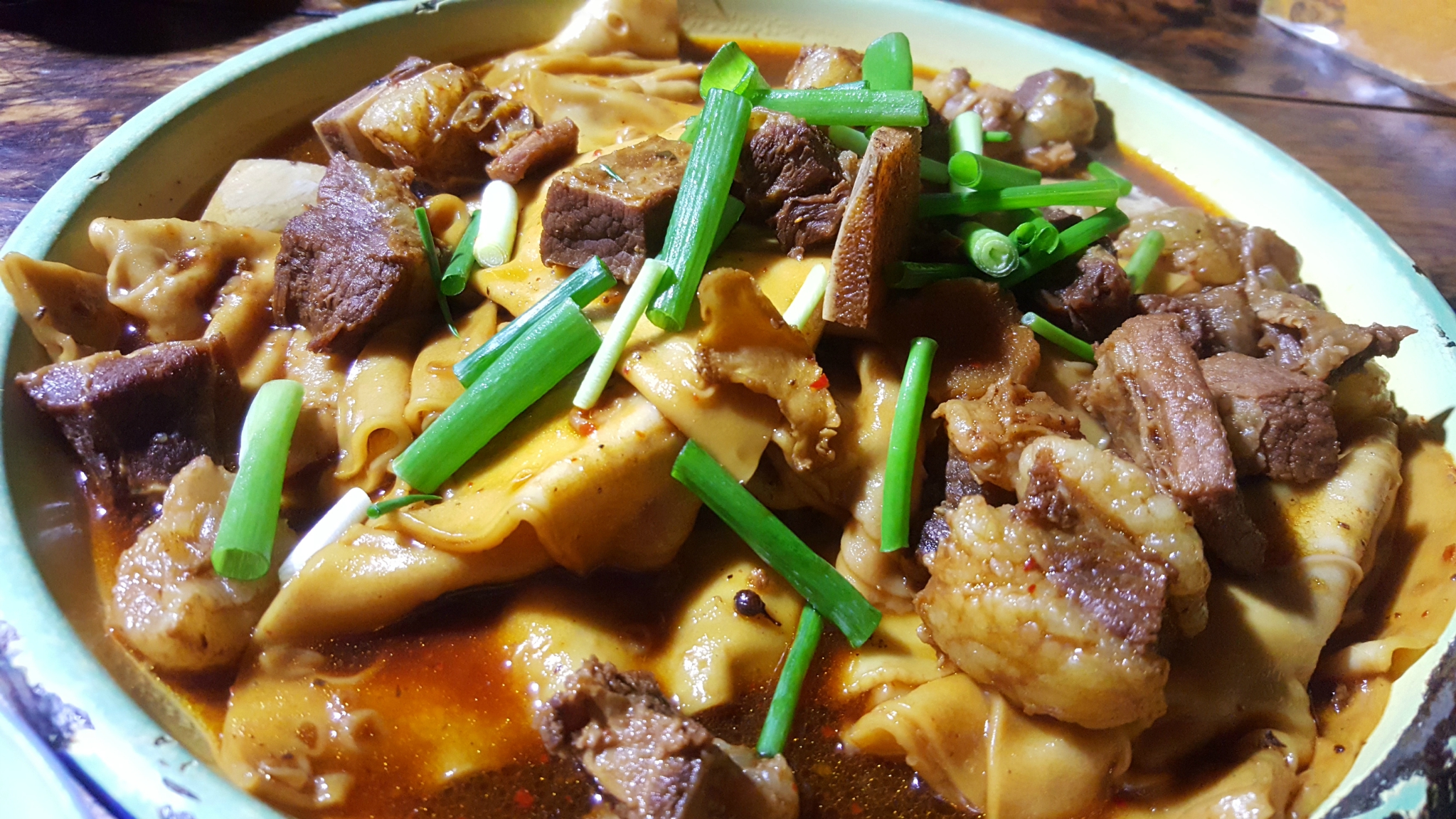 白天还是非常热闹的,我们选择的是一家非常有名,口碑也很好,做焖饼的饭馆,口味确实相当不错,牛肉...