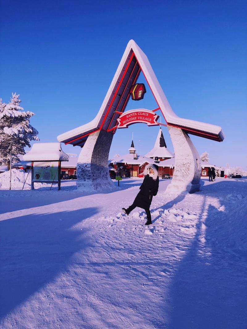 原来圣诞老人是真的有,而且每天都要接待各国游客会很多国家的语言,想要成为圣诞老人还需要考试,持证上岗。这里有一条南北分界线,许多人会在这里拍照,一脚跨国分界线就正式进入北极圈了。当天阳光很好,照着雪地分外明媚与妖娆。这里就是这次极光之旅的最后一站了,虽然遗憾的与极光擦肩而过,但是有遗憾人生才丰满,最美的风景一直在路上。期待下一次的行程…