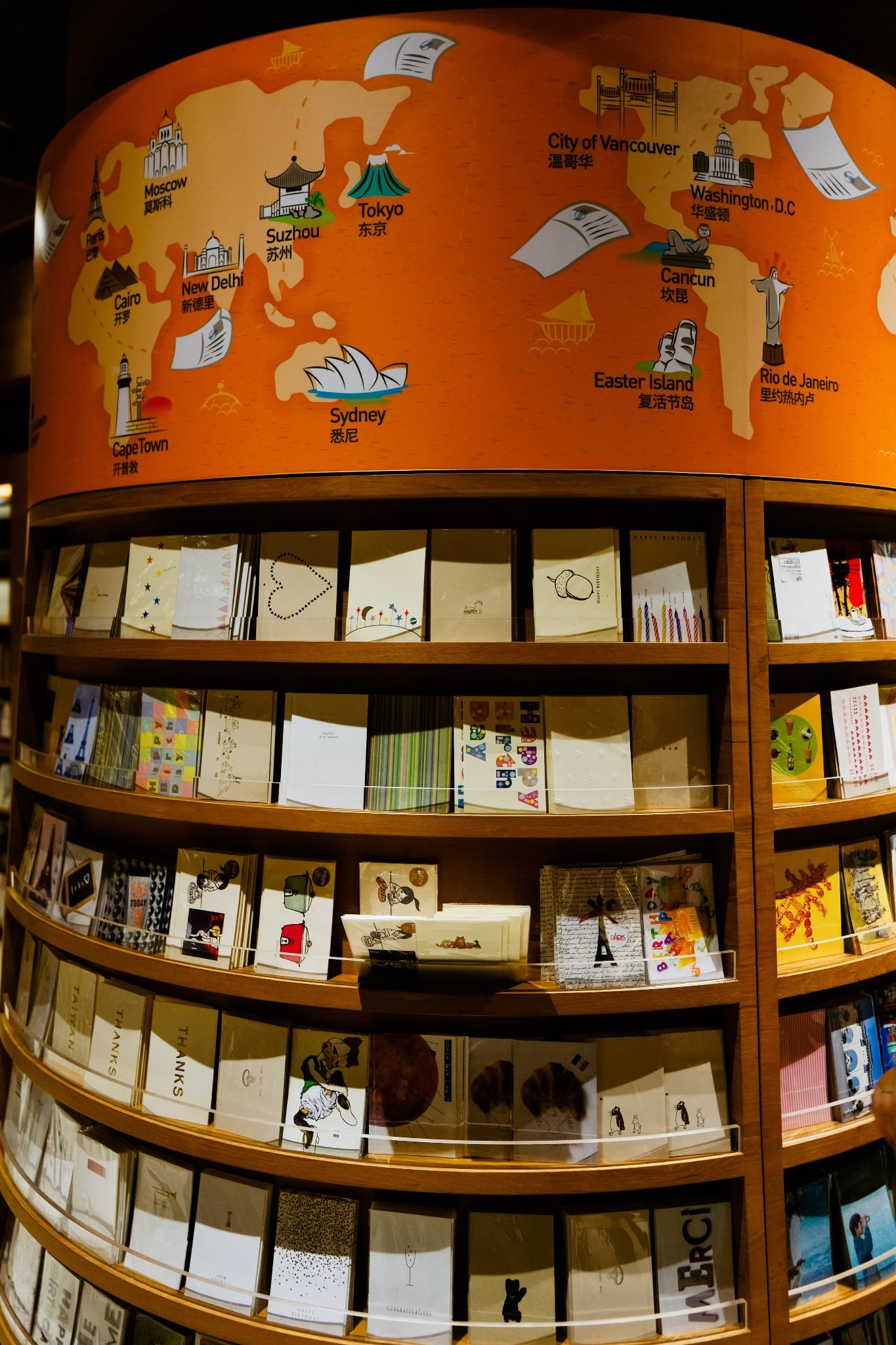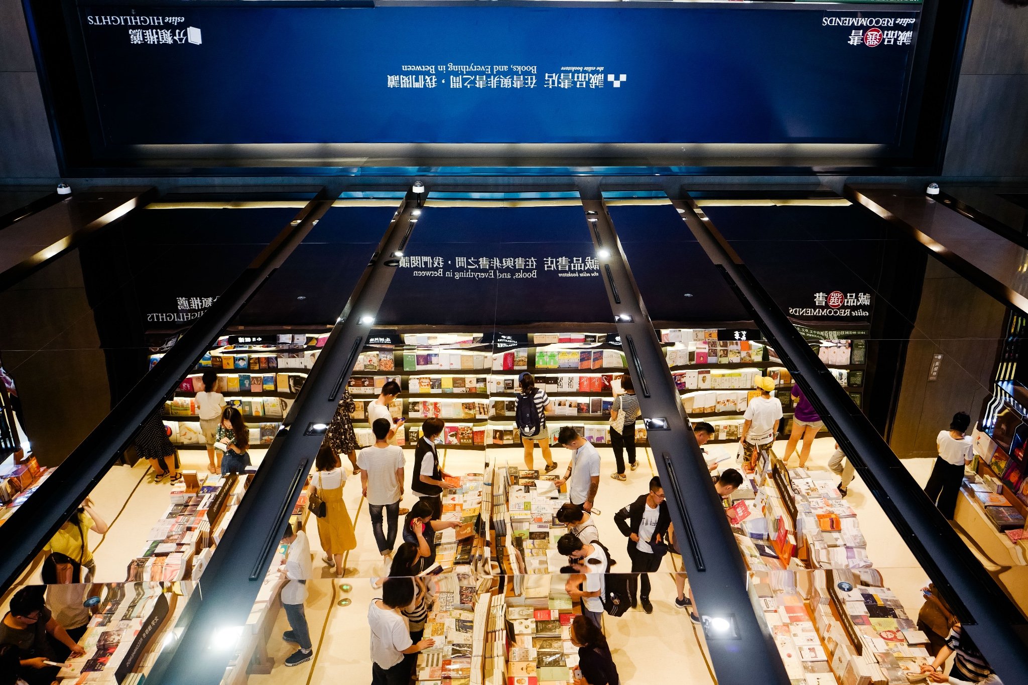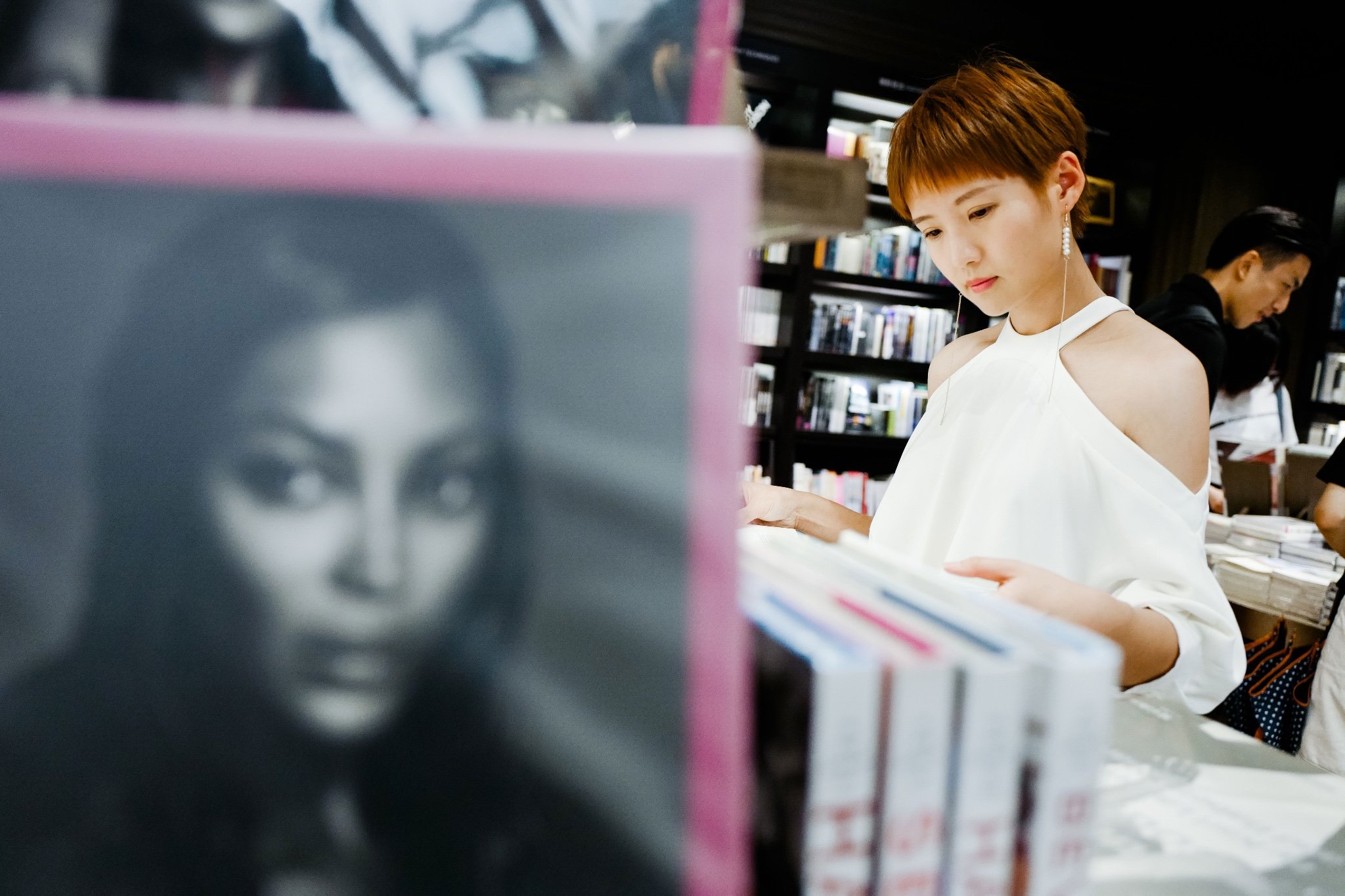 吃完饭没走几步,肉哥就在推车里睡着了。正好给了我们时间安静逛书店。诚品架上的书,每个学科领域都能细分到无限细,并且有许多世界各地出版物,其书目量着实让人惊叹。