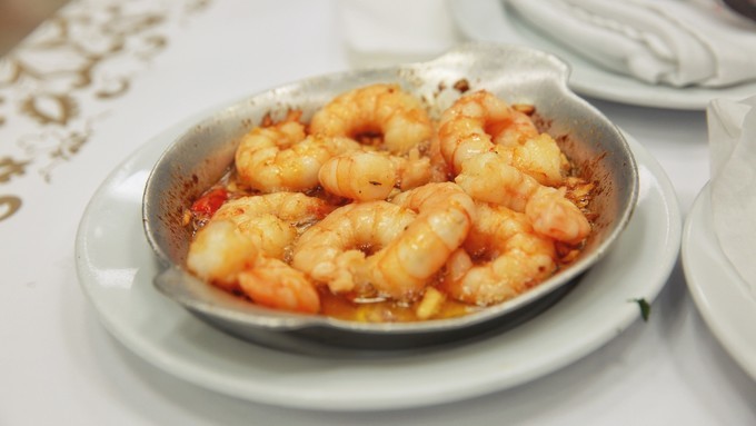 点菜是用iPad,清一色的海鲜,从上往下数各式各样的虾和螃蟹。作为一个螃蟹无能者,实在是忍受不了每次吃完螃蟹以后都跟补钙了的感觉——一嘴碎壳子,功夫不好的时候嘴上还会挂彩。在我的强烈主张下,这顿晚餐全是虾(蒜蓉虾仁,焗老虎虾,澳洲龙虾)部分海鲜是按照重量标记的价格,这点一定要注意。