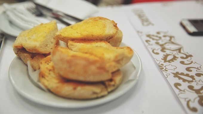 服务生飞速的协助我们下完单后,立刻给我们送上了餐前的黄油面包,松脆可口。
