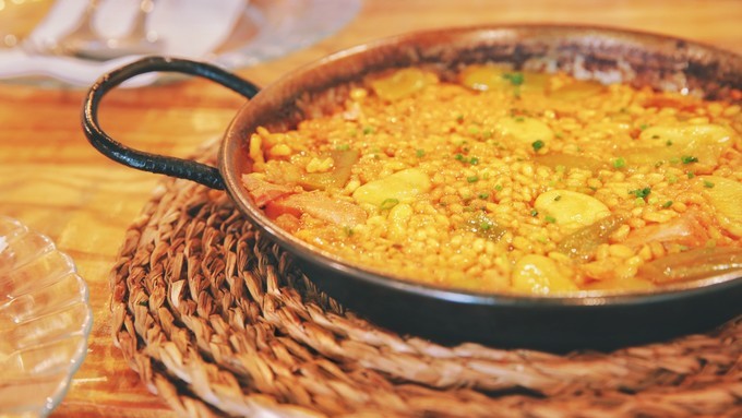 ...维利亚 大学北面的『Cristina and』餐厅,在服务员的推荐下我们选择了一种全素的海鲜饭