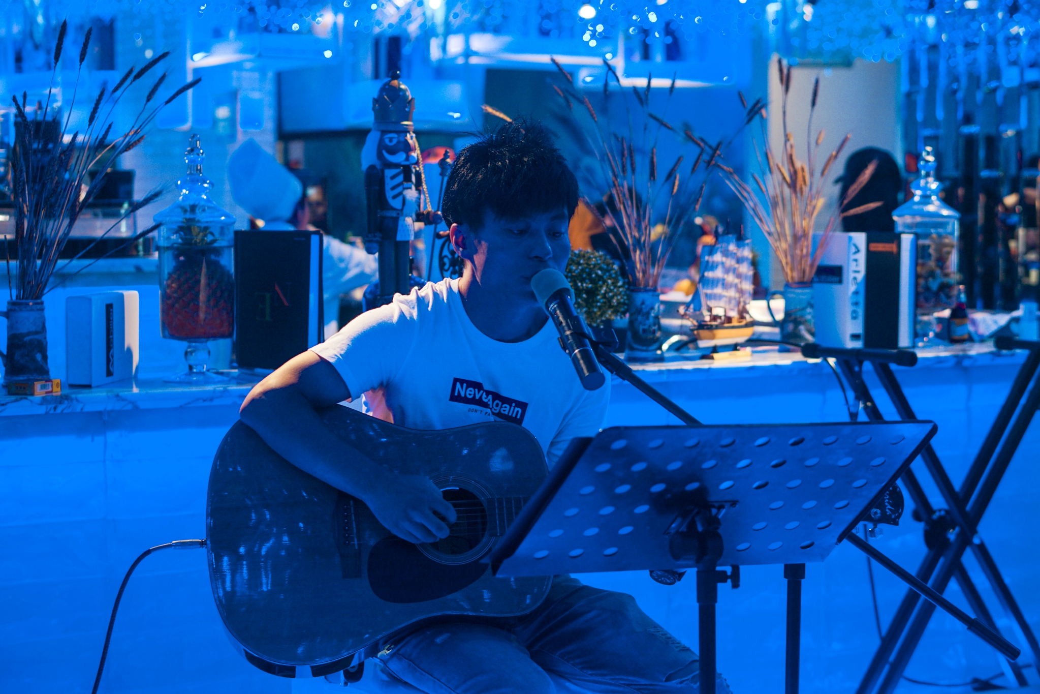 在这梦幻的蓝色海洋世界里,这么浪漫的氛围,不来点表演怎么行?这不,晚上8点左右,现场还会有驻场歌手表演。一把吉他伴着透亮的歌声,听起来既感动又温馨。