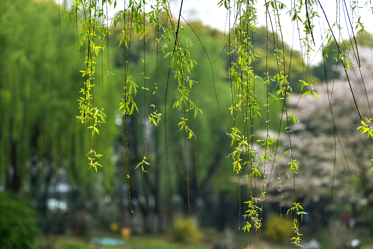 樱花红陌上,杨柳绿池边。