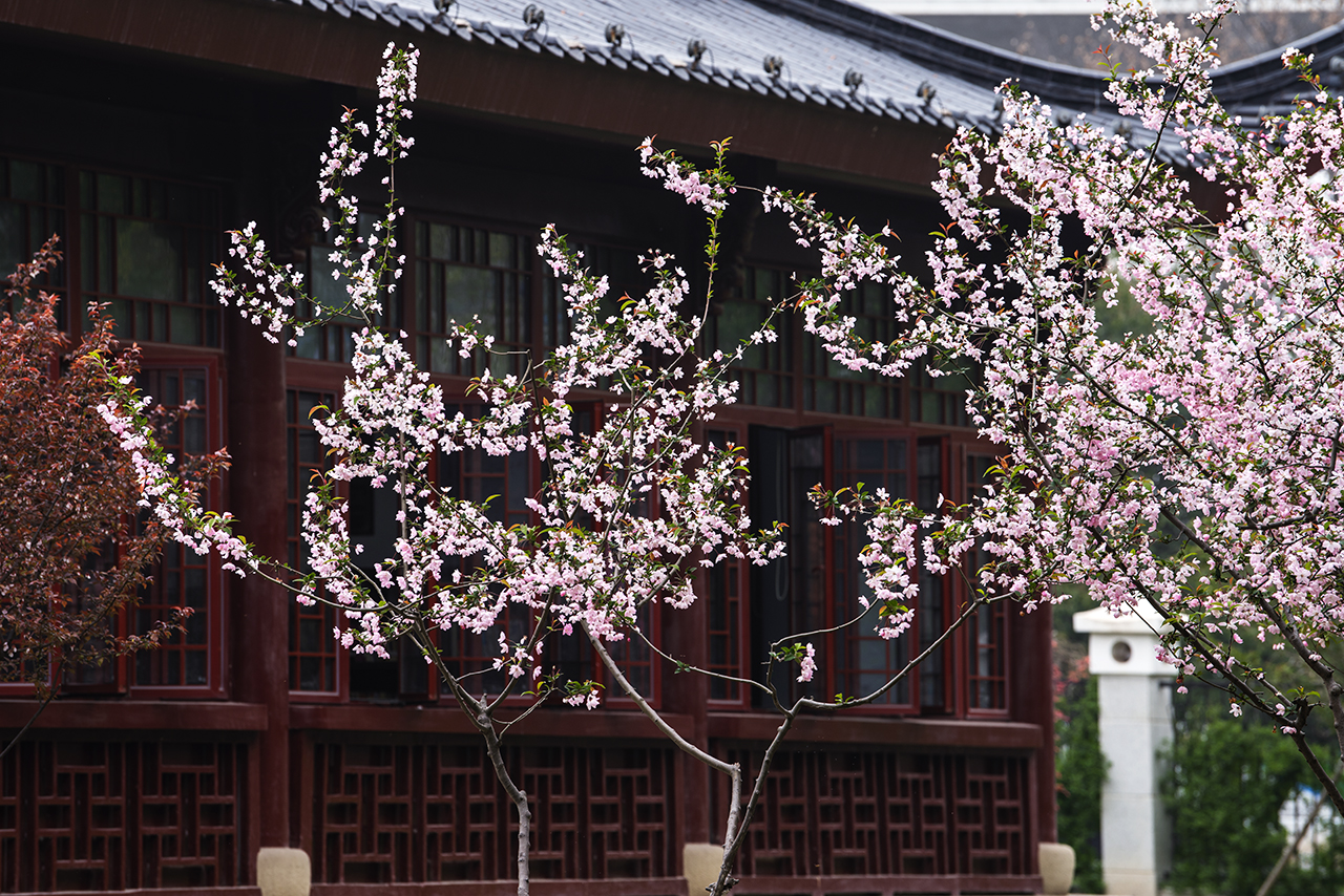 一阵春风掠过,粉色的花瓣随之轻轻起舞,分分钟上生出“乱花渐入迷人眼”的美丽意境。