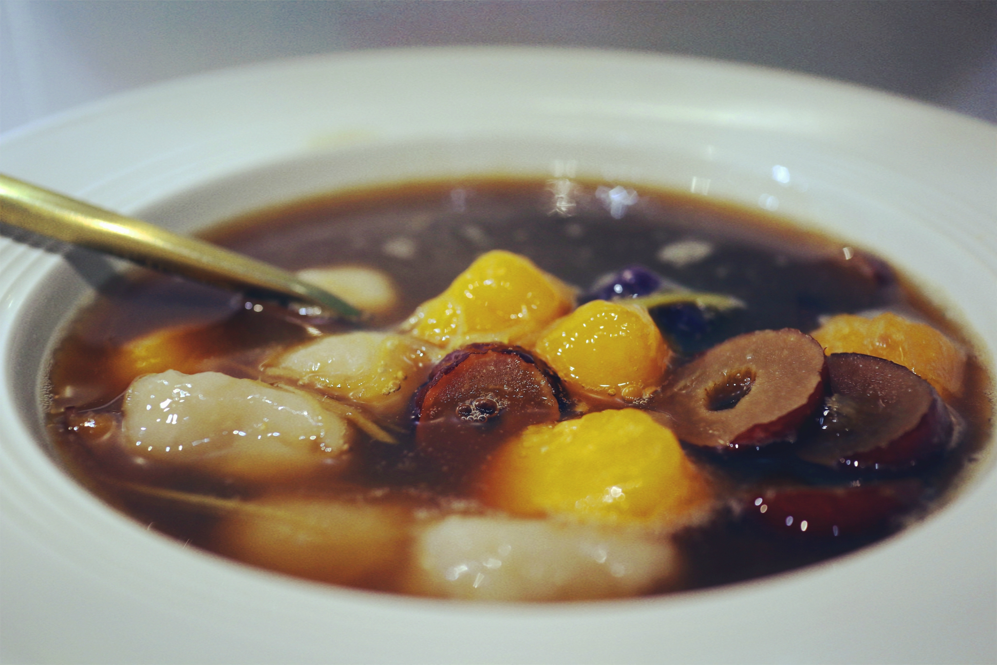 除了拿手的炒冰,这道甜食应算是店里的第二段招牌菜品,也是自己偏爱的一种冬日暖胃甜汤。老板选用农家老姜与优质红糖熬制而成的姜汤,配上紫薯、地瓜与芋头三种口味的芋圆,简直便是冬日驱寒的首选。