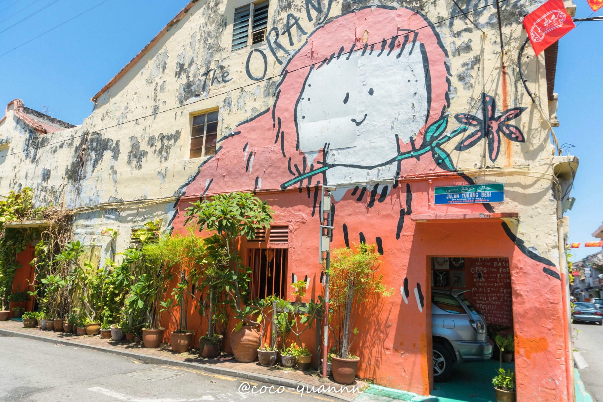 如果你看到这个壁画,那么在这个路口左手边那栋绿色的房子就是他家的店铺所在地。