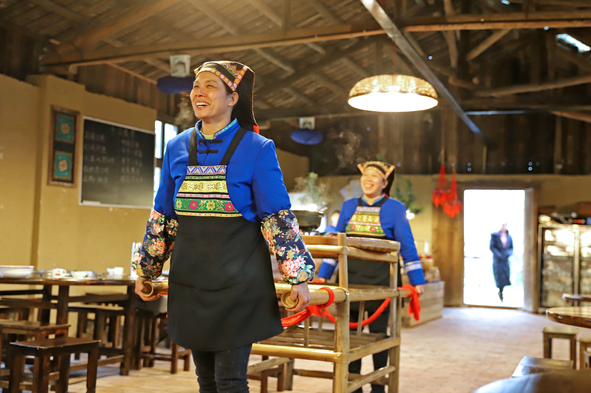 进门就看见悬挂在中央的绣花球,精美的手工艺品,在瑶族可是有故事的,抛绣花球寻亲。这里面的服务员都是村子里的人,身穿民族服装,感觉特别有意思,而且大家都很和蔼可亲。