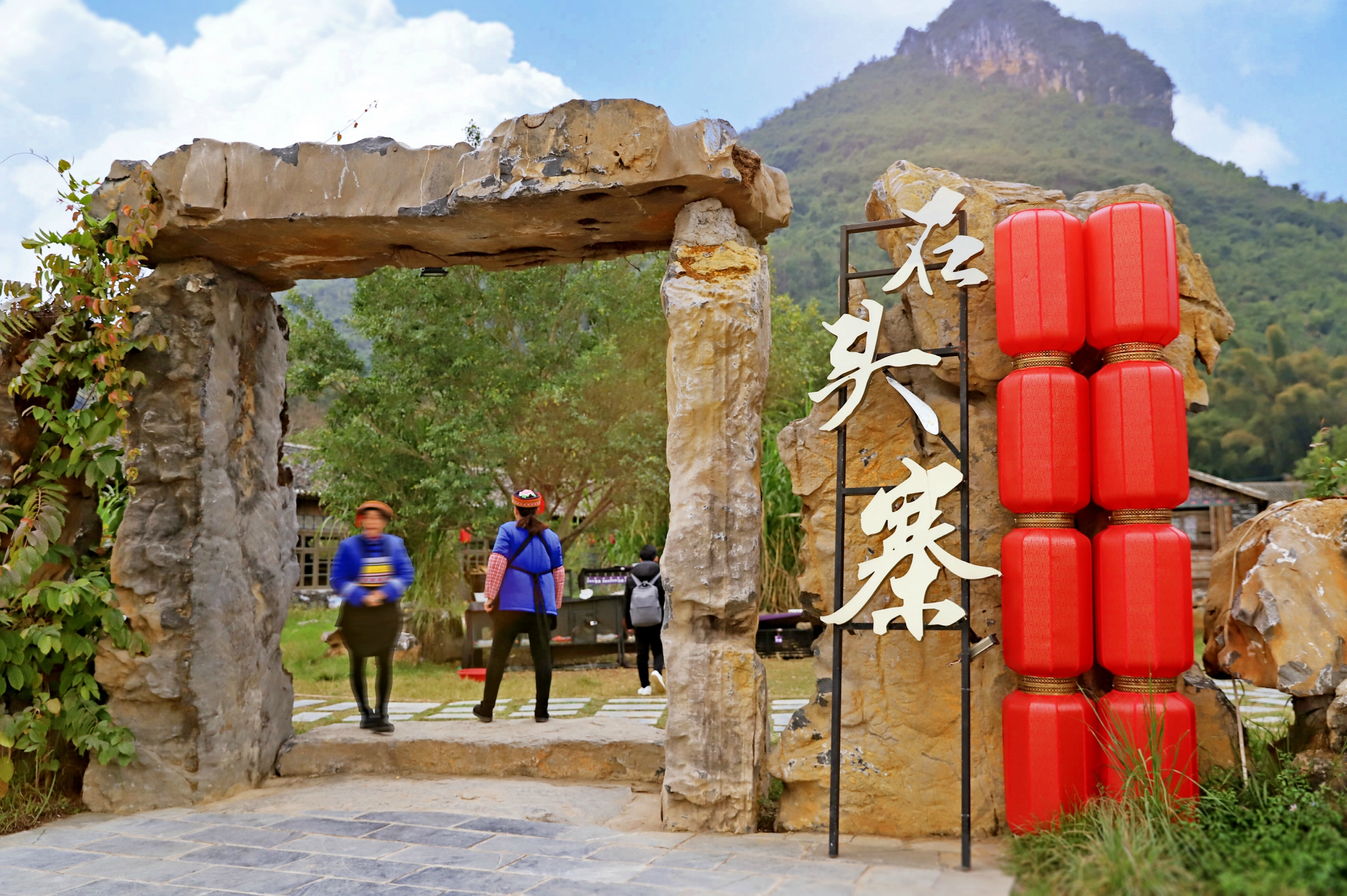 从白马山下来不远,就是福利古镇,三面环山,一面临水,素有“三山环古镇,一水抱绿州”之雅誉。传说中的石头寨就藏身于此,门口的设计让我感觉去到了某个古老的原始村落。寨内的摆设与我在阳朔县城的看到的风格差异很大,原来这是瑶族的特色。