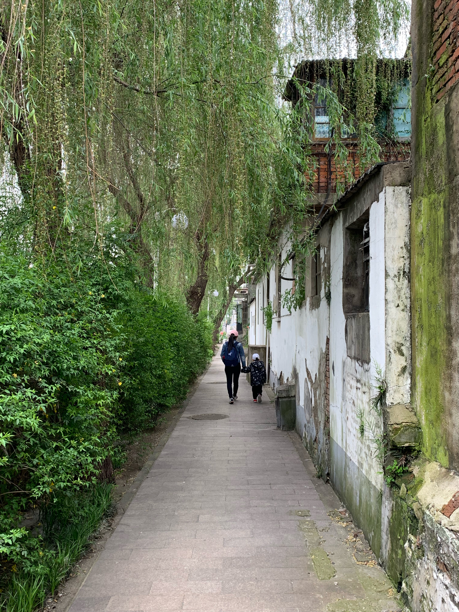 空气氤氲潮湿,很多植物就这样从砖缝里茂盛得生长着