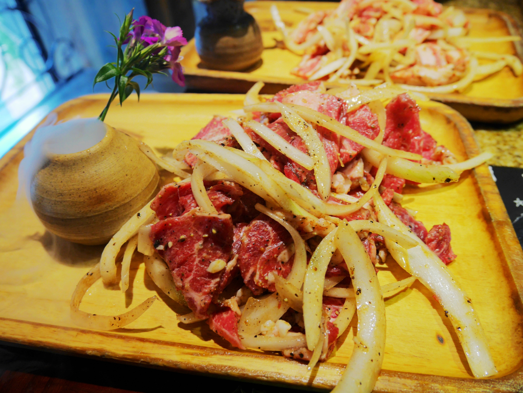 牛肉,牛肉加了洋葱,餐盘上面还有冒气的干冰,也是颜值很高的菜品。