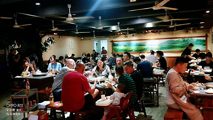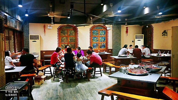 #点评召集令# 1店名由来及简介: 这家重庆巴田火锅(和平路店),创立于1994年,原名“田鸭肠”火锅,店被人先抢注了名字,为了注册自己的商标,遂更名为“巴田”火锅。 实际上现在的店名“巴田”更能体现重庆的“激情巴乡,和谐田园”的地域特征和田园风情。 作为重庆火锅中的十年老店,不变的是店主以及重庆本土特色的火锅风味。 现在的巴田火锅已然入驻重庆火锅协会会员单位,并收获重庆放心火锅五十佳企业荣誉。 2地理位置与出行: 重庆巴田火锅位于重庆市渝中区和平路301号(七星岗通远门旁)。 交通出行方式:可乘地铁1号线或者2号线到较场口地铁站1号口出,步行约800米即到。 根据自己的就近地理位置,乘坐相应公交到七星岗或者临江门公交站下,跟着地图导航再走一点路也可找到这家火锅店。 2店里环境与服务: 这家火锅店进门需要走上三层楼,里面有两个大厅,店内装修是中国国营风格特色,一看就是个老店了。 店内生意比较好,里面就餐人员还是比较多的,很多客人看起来像是重庆本地人。 服务员阿姨和大姐工作勤快,招待客人算是热情,给餐桌每个人都配上了油碟调料,并提供了免费纸巾和我们点的酒水饮料,吃火锅途中有什么事情或者问题直接喊过来说声就好。 火锅吃起来衣服上会有味道或者防止油弄到身上,可以找阿姨要个围裙带,1店一小伙伴就要了围裙穿上,也显得很有特色。 3火锅体验与菜品推荐: 这是本人来山城重庆吃的第三份火锅了。每一次都是不一样的感受。前面两次点的是鸳鸯锅,这一次点的是九宫格(微辣)火锅。 他们家的菜品新鲜,分量足,口碑好,回头客多,火锅辣而香,非常入味,是重庆本地人认可推荐的。这次火锅体验感觉还是很好的。 店家给我们统一配发的油料含葱香、蒜泥、香酒、耗油等调料,虽然品种不多,但是调配起来味道还是很赞的。 我们点的桂花酸梅汤是古方熬制的地道京味,出自老北京永裕堂,300ml含量,喝起来口感不错,维怡花生奶和听装百事也算好喝的。 这家火锅店推荐菜品当然少不了他们家的招牌鸭肠,逢火锅毛肚、腰片、鸭血、虾滑、千层肚、午餐肉等也是必点的。可以推荐的还有酥肉、嫩牛肉、牛肉丸、无骨凤爪、井水豆芽、木耳、金针菇、土豆等菜品。 我们一行七个人点了很多火锅菜品,一共吃了489元,平均一个人摊下来大概70元,算是比较实惠了。 4总结:火锅作为山城重庆的特色美食,是来重庆不容错过的体验。每一家重庆火锅店都有自己的魅力所在。