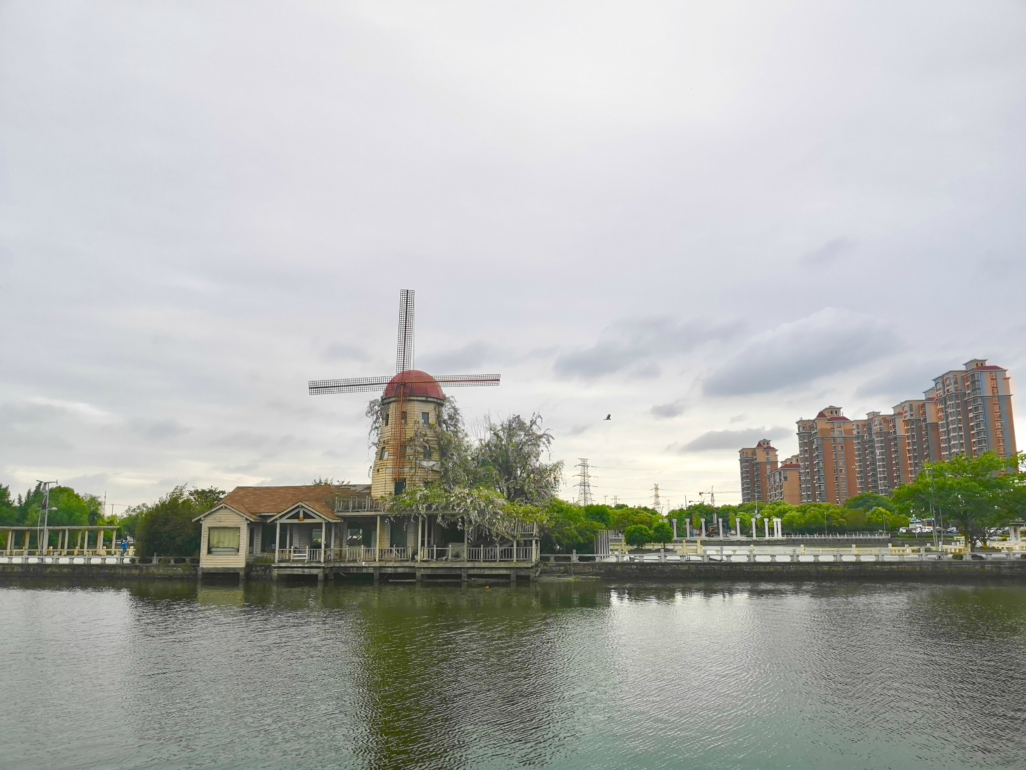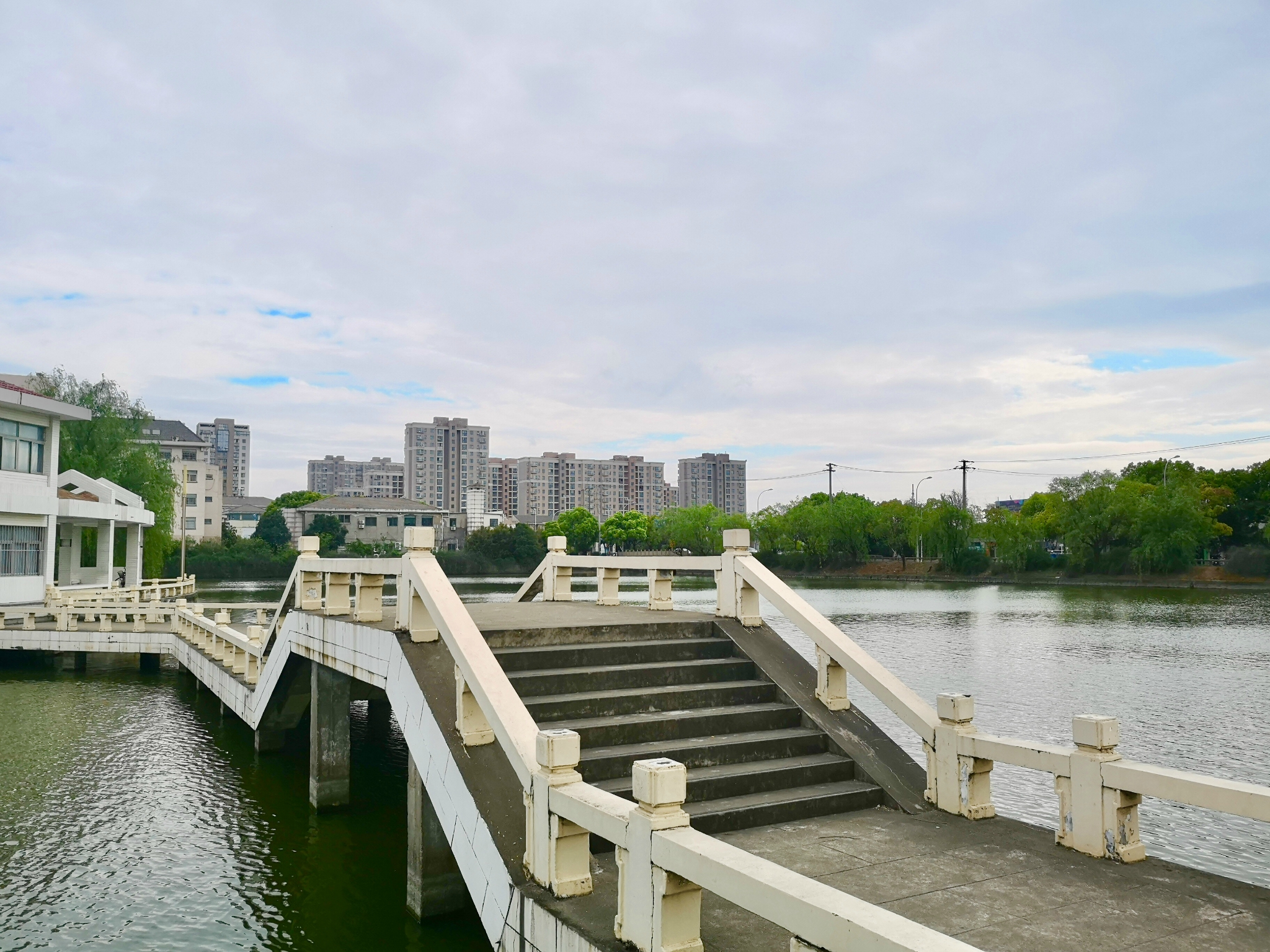 金浦公园临水而建,公园中央就是一个面积超大的湖,旁边还有吴淞江支流,平时湖水平静,在拱桥上走走,或者是在湖边的长廊上坐坐,都能感受到微风拂面,尤其是现在夏天,简直是避暑的胜地。