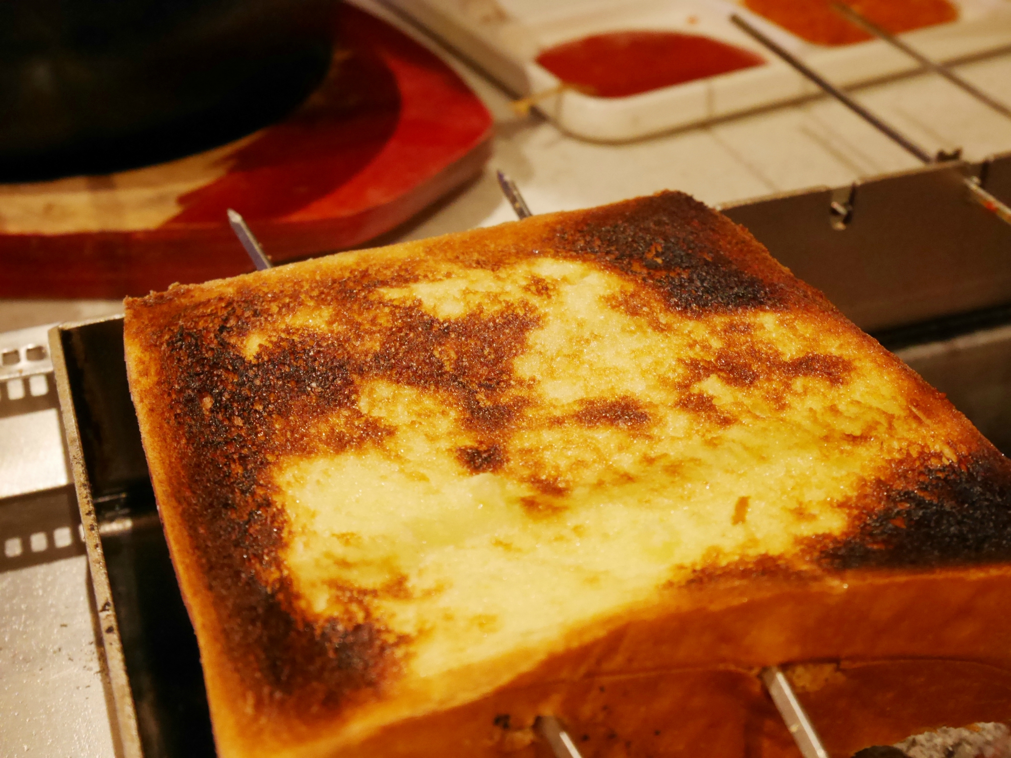 面包片,最容易糊,因为太大块,滑道翻不动,完全需要手动翻面,稍微迟疑一些就糊掉了。