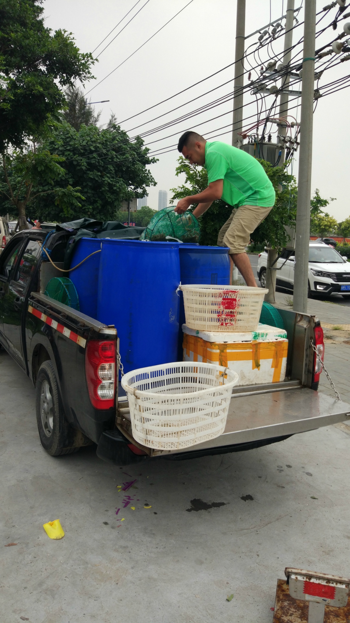 吃早餐的时候刚好碰见档主卸海虾,活蹦乱跳的,很新鲜,看得我口水流了一地,那中午就吃海鲜大餐啦!