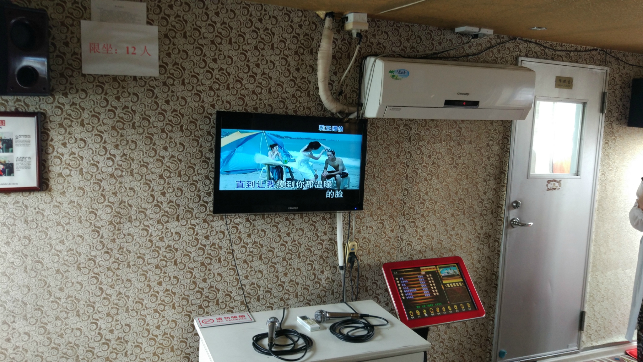 船上一共分了三层,第三层是风景最好的,但要120元一张台5个座位。也有KTV包厢,但应该没人上船就是为了唱几首歌吧。。。所以果断拿了一张桌子。