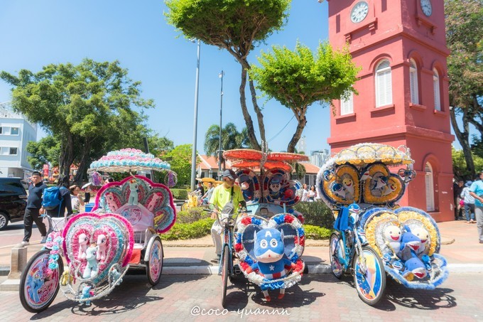 这些人力车不仅长相各异,载客后还会播起音乐,夜晚还有灯光。