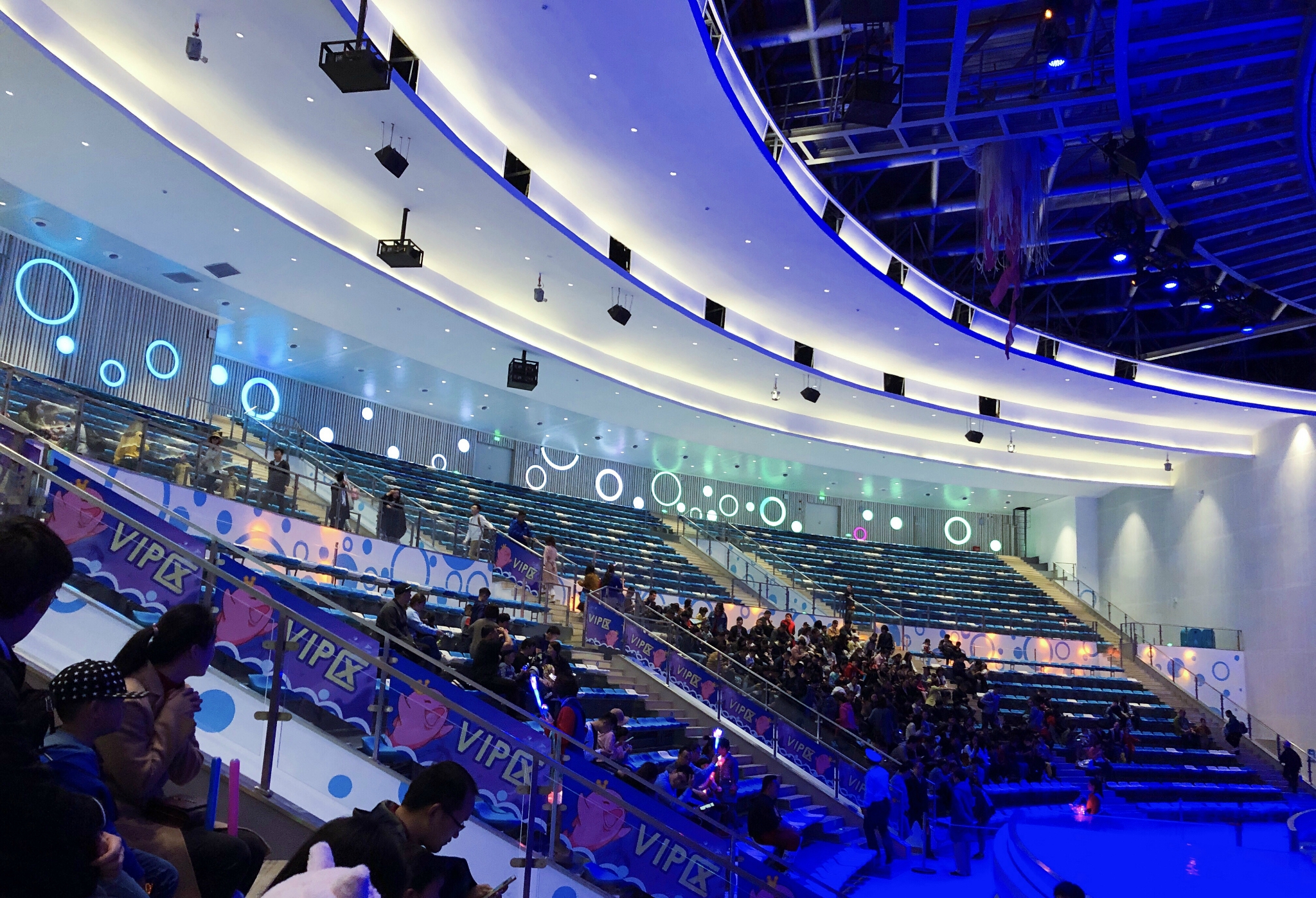 ...IP观众,VIP是需要额外付费的,观赏的角度比较好,而且和海豚互动,也是会邀请VIP座位的观众