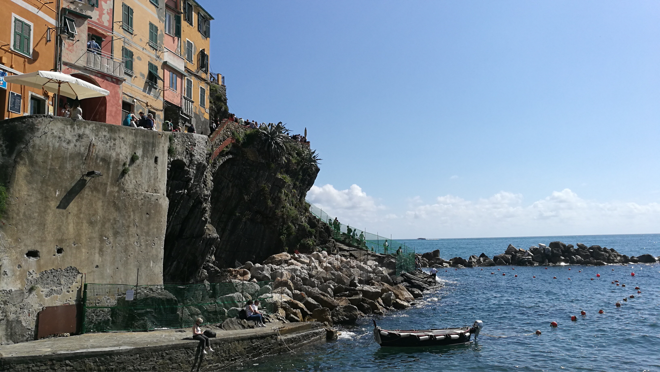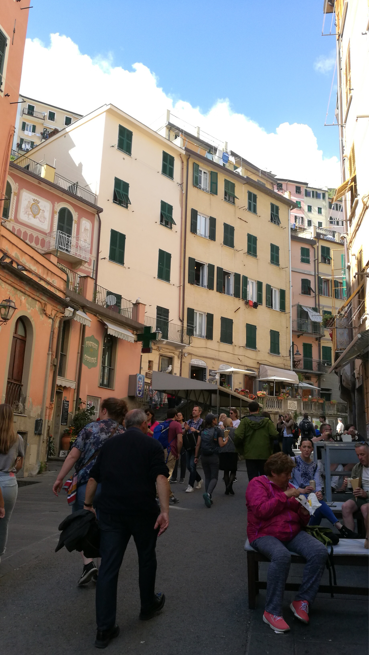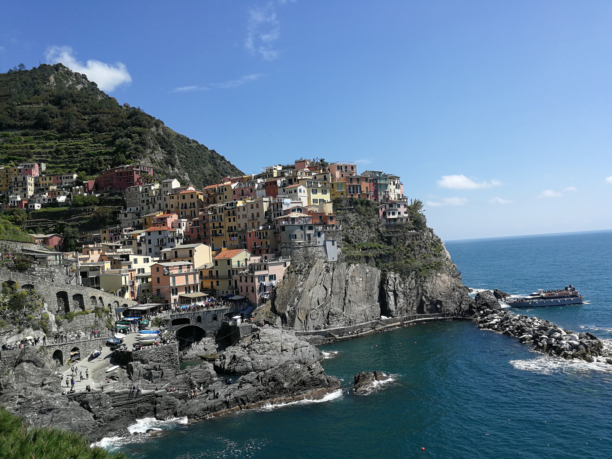 去的第一个村是马纳罗拉~著名网红村,《孤独星球》推荐旅行地~颇有点像宫崎骏《悬崖上的金鱼姬》那个场景,房屋被涂成五颜六色,方便归家的船员快速辨认出自己家的位置