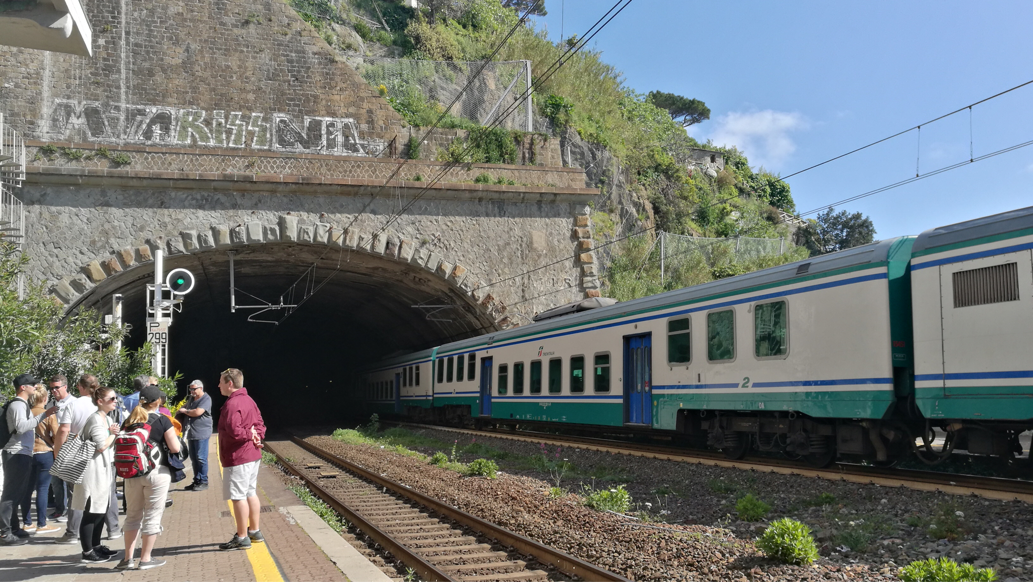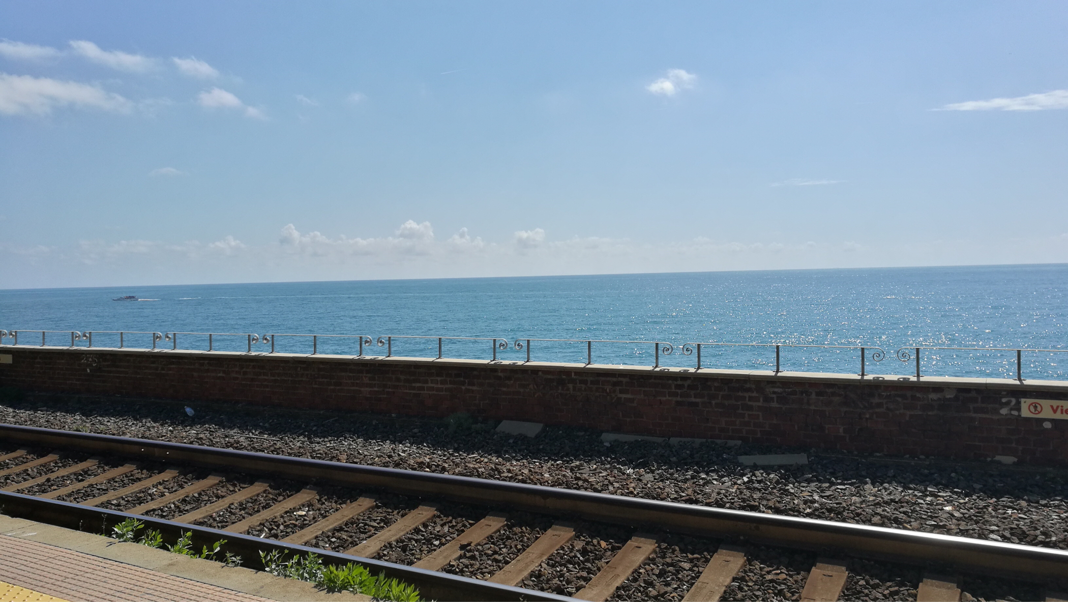 每个拐角处都是最佳风景~。游览的第二个村里奥马焦雷~不少人躺在岩石上享受阳光。铁路有点日式小清新哦~
