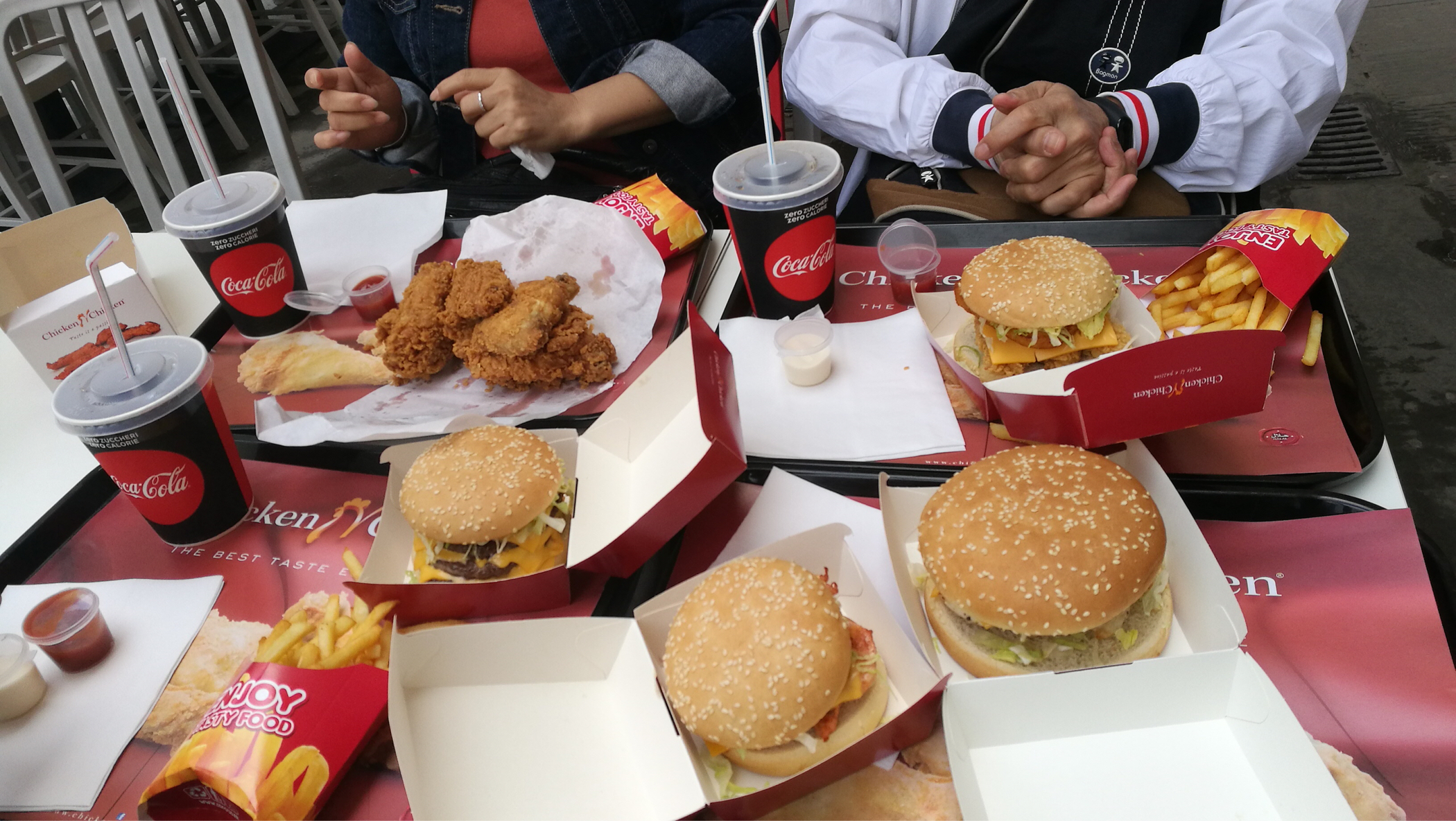 进村前在五渔村火车站附近一家印度人开的炸鸡店随便吃了点~应该都点炸鸡套餐~汉堡用的都是各种做法的鸡胸肉~