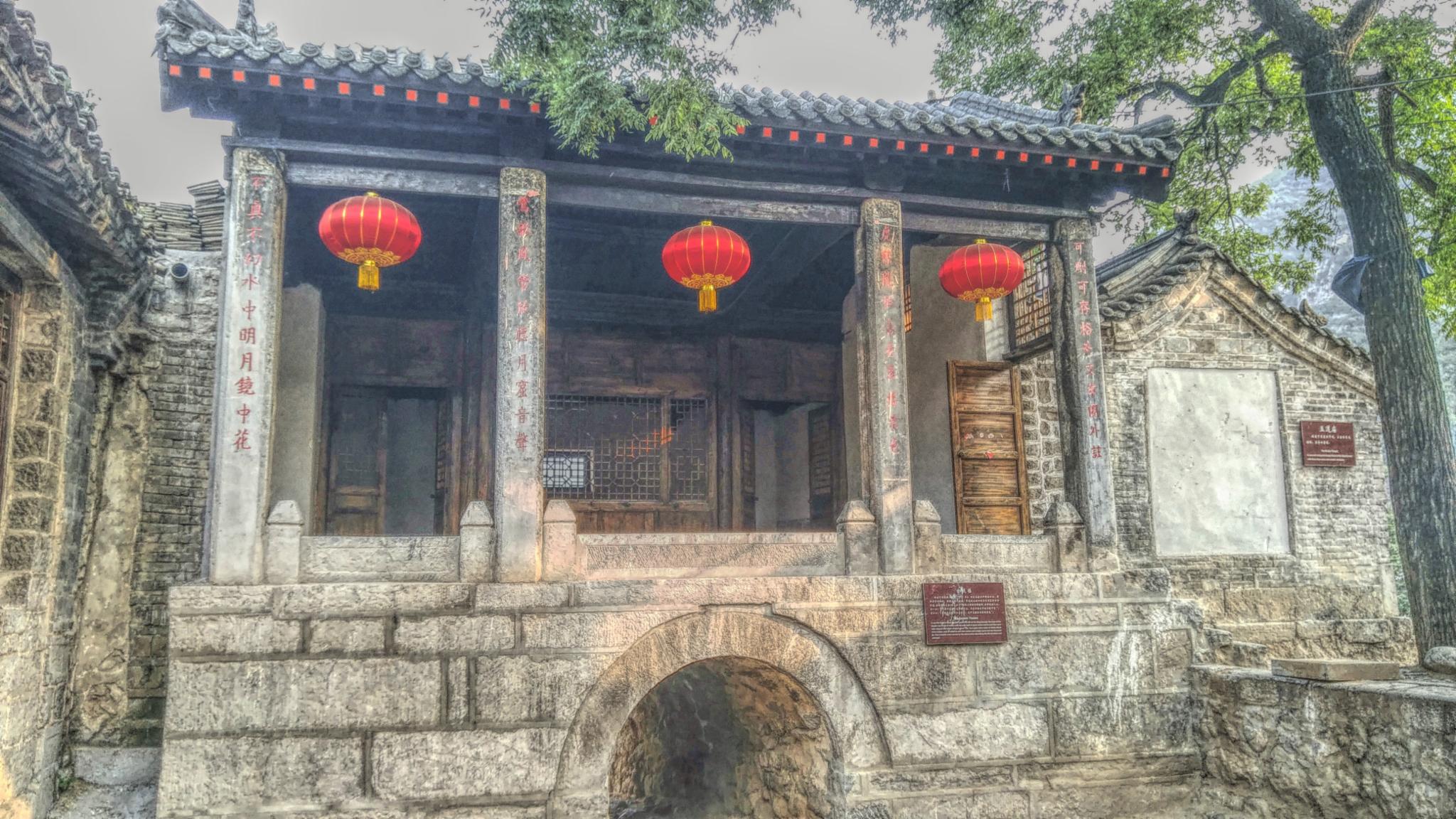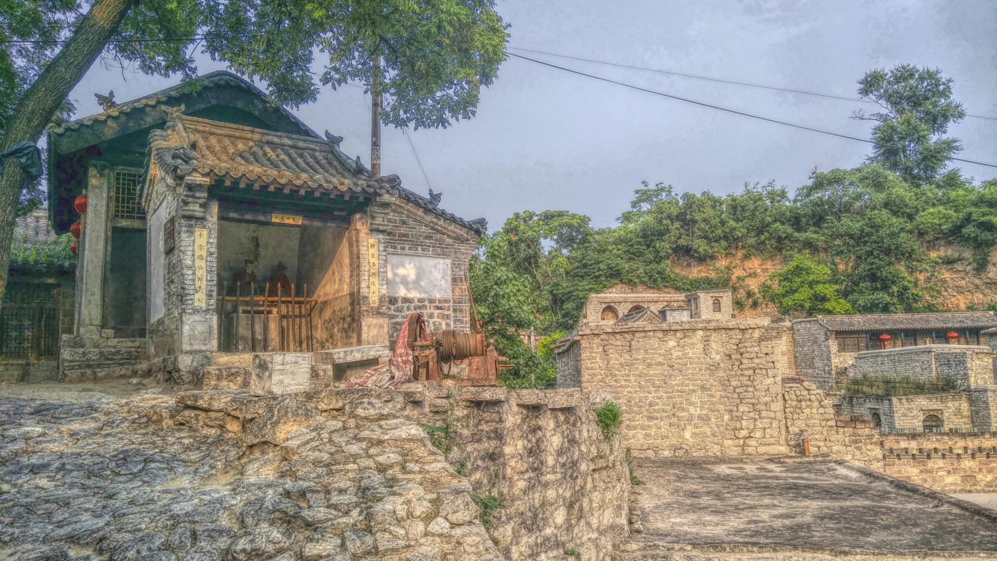 村子大门口是整个村子最古老的大树,已有千年历史。每天都有村民在树下乘凉聊天。进村后可以看到一座阁楼式建筑,上面是“小巧”的关帝庙,下面是一个类似于城门的拱形通道,很有特色。