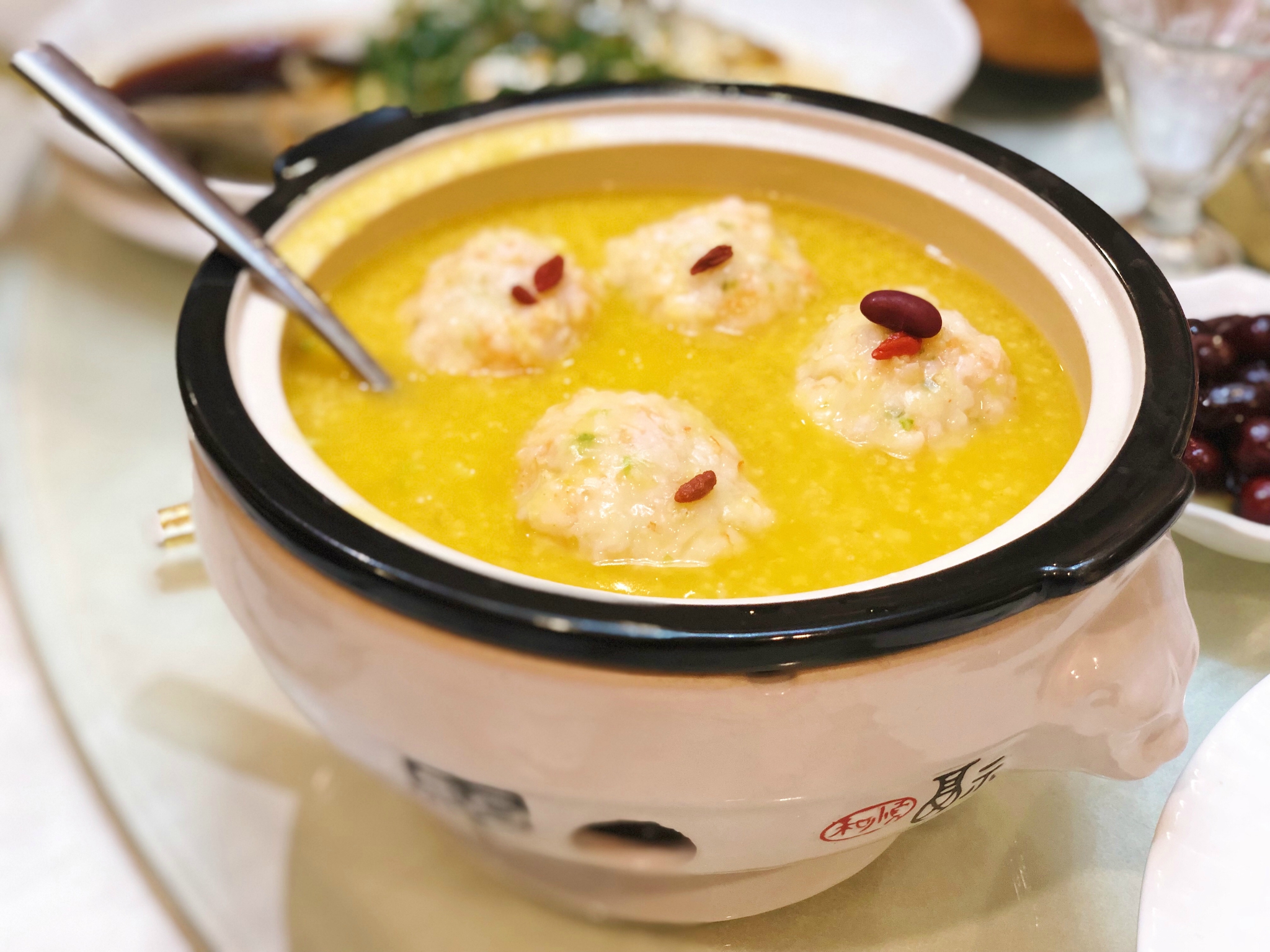 狮子头主要用虾仁制作 小米粥中也融入了虾仁的鲜美度