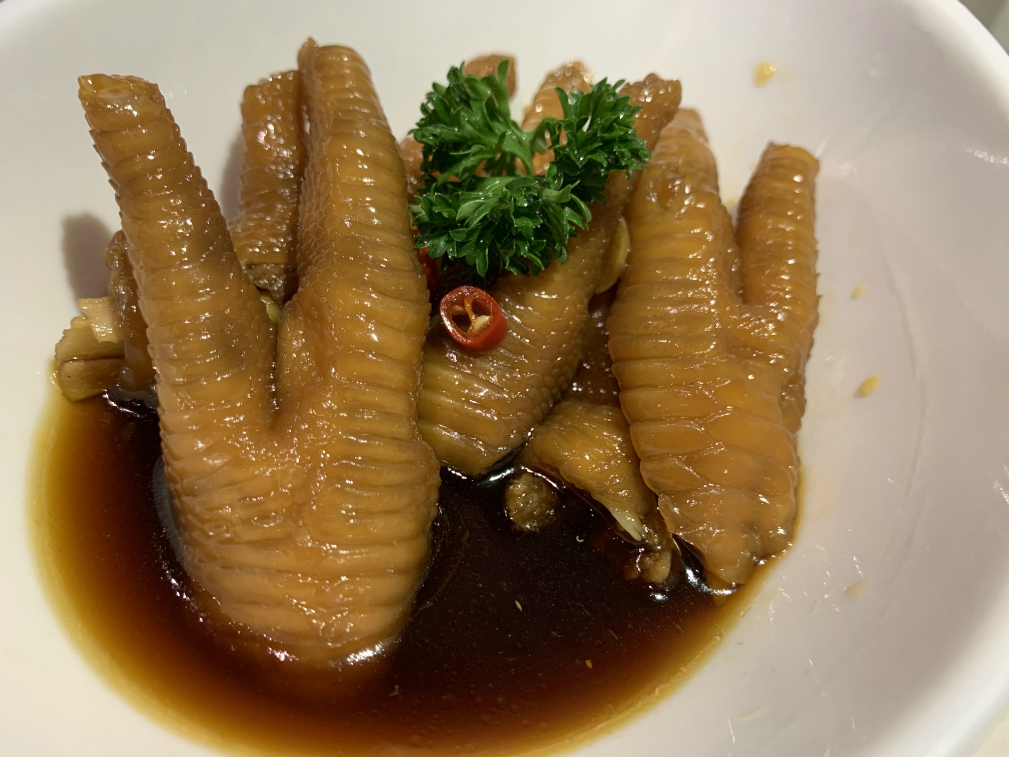【酱皇豉椒蒸凤爪】味道偏淡,没有什么酱味,不是XO酱那种鲜味,不过挺烂,容易吃。