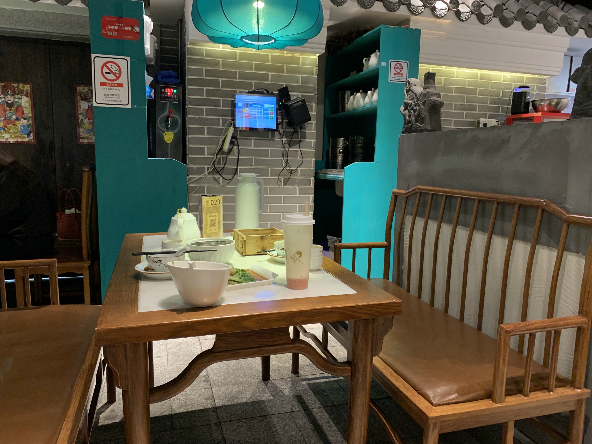 禄运好像越开越多,但其实出品不太正宗,这家在最里面的位置,稍稍有点难找,满座了,晚一点要等位,里面还算大,就是感觉有点拥挤,座位不太舒服,凳子比较硬,头上的灯太矮了有点压抑,不会很吵。