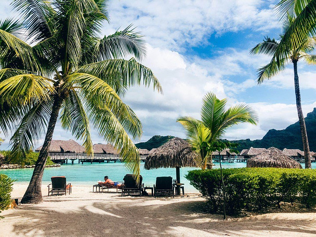 今天终于来到我梦想中的岛屿“BoraBora” 在飞机上就被这片美丽的海景震撼到了 迫不及待想要赶紧换上泳衣,冲进海里玩耍~ 登上酒店私人包船直奔今天的休息地:泰拉索洲际酒店~坐在水屋的露台上看着色彩如梦幻般的潟湖,细致如雪的白沙,这一处就是无忧无虑的度假天堂☀️