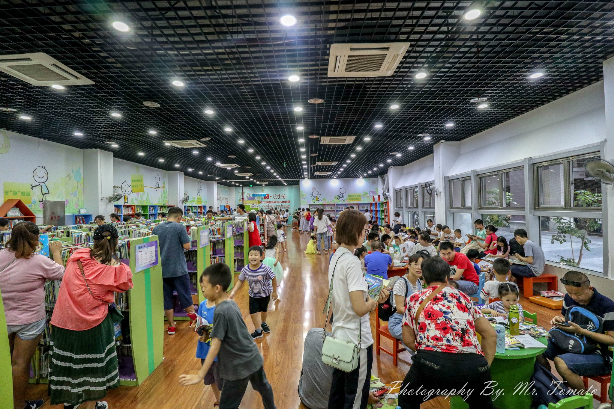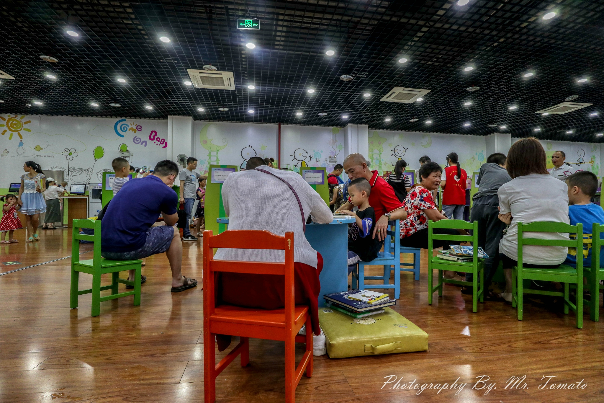 离开科技馆,发现文化艺术中心这里还有很多好玩的场馆,周边有博物馆和图书馆,都是免费的。博物馆?不不不,求放过,逛了一天逛不动了,还是去图书馆就好了吧,图书馆里有专门的儿童馆,小朋友似乎有用不完的精力啊,又是跑东跑西,看完这本看那本。至于家长都是随意找块地就坐下了,感叹家长都不容易啊。