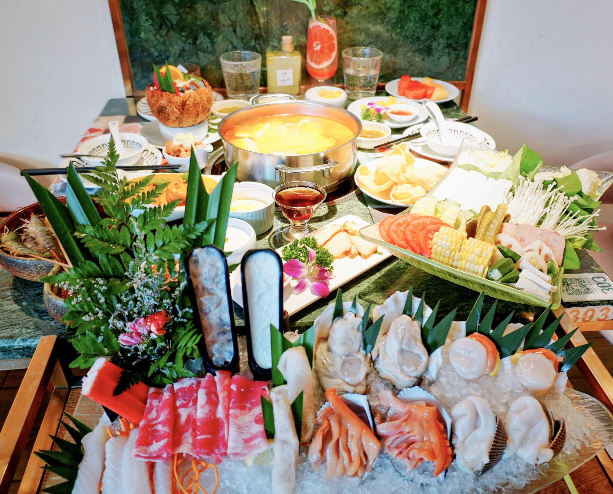 觅食的第一站我们来到了位于太古里附近的集渔泰式海鲜火锅。这是一家颇有情调的火锅店,偏向ins风的装修风格,一共有三层,走进去有一种在东南亚热带雨林的感觉。