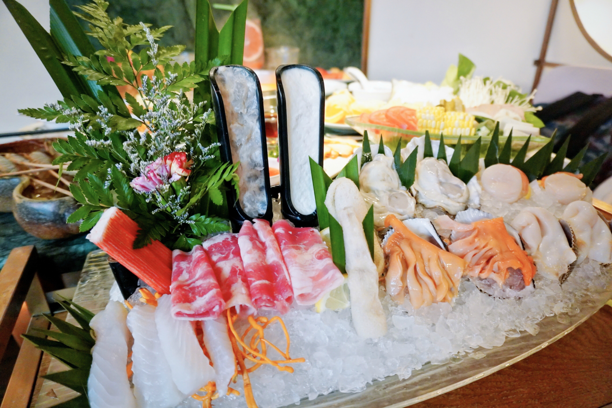 海鲜船拼盘必点哟,各种新鲜的海鲜拼一盘,虾拿上来的时候还是活的,加上肥牛和蔬菜拼盘,两人套餐份量足够。