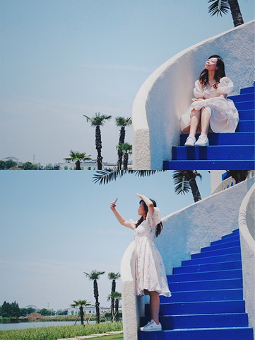 无锡 | 尚田小镇遇见蓝白色的圣托里尼! 从小就有个蓝白色的爱琴海梦,所以即使再多人吐槽圣托里尼的坑,也阻止不了我对它的向往。听说有人在无锡的尚田小镇造了个同款蓝顶教堂,就赶紧打了个高铁去过把瘾! 尚田小镇位于无锡的惠山区,从无锡市区出发建议自驾,大概40分钟车程;如果是坐高铁,建议大家坐到惠山站,然后打车一个起步价的距离,非常方便。 门票现场购买38,近期因为灯光节的原因不能网上购买,不然美团可以便宜10块,去的宝宝注意一下。 其实尚田小镇是个婚礼小镇,非常适合拍照,有集装箱、玫瑰园等等,如果带小朋友来还可以去马场和萌宠乐园,不过需要单独收费。 我自然是冲着蓝白建筑去的,进门着路一直走到头就是。不仅有堪比圣托里尼的蓝白色,还有一片人造沙滩,真的非常美好了,绝对不是照骗,随手拍大片! 我是中午去的,一路没有树荫遮挡,真的很热很晒!拍了十分钟就已经受不了,相信隔着照片大家都能感觉到热浪了,所以建议大家还是天凉一点或者傍晚的时候再来。 因为刚开业所以尚田小镇平时人不多,不过目测很快就会成为大家争相打卡的网红地了,所以想来的小仙女们抓紧!