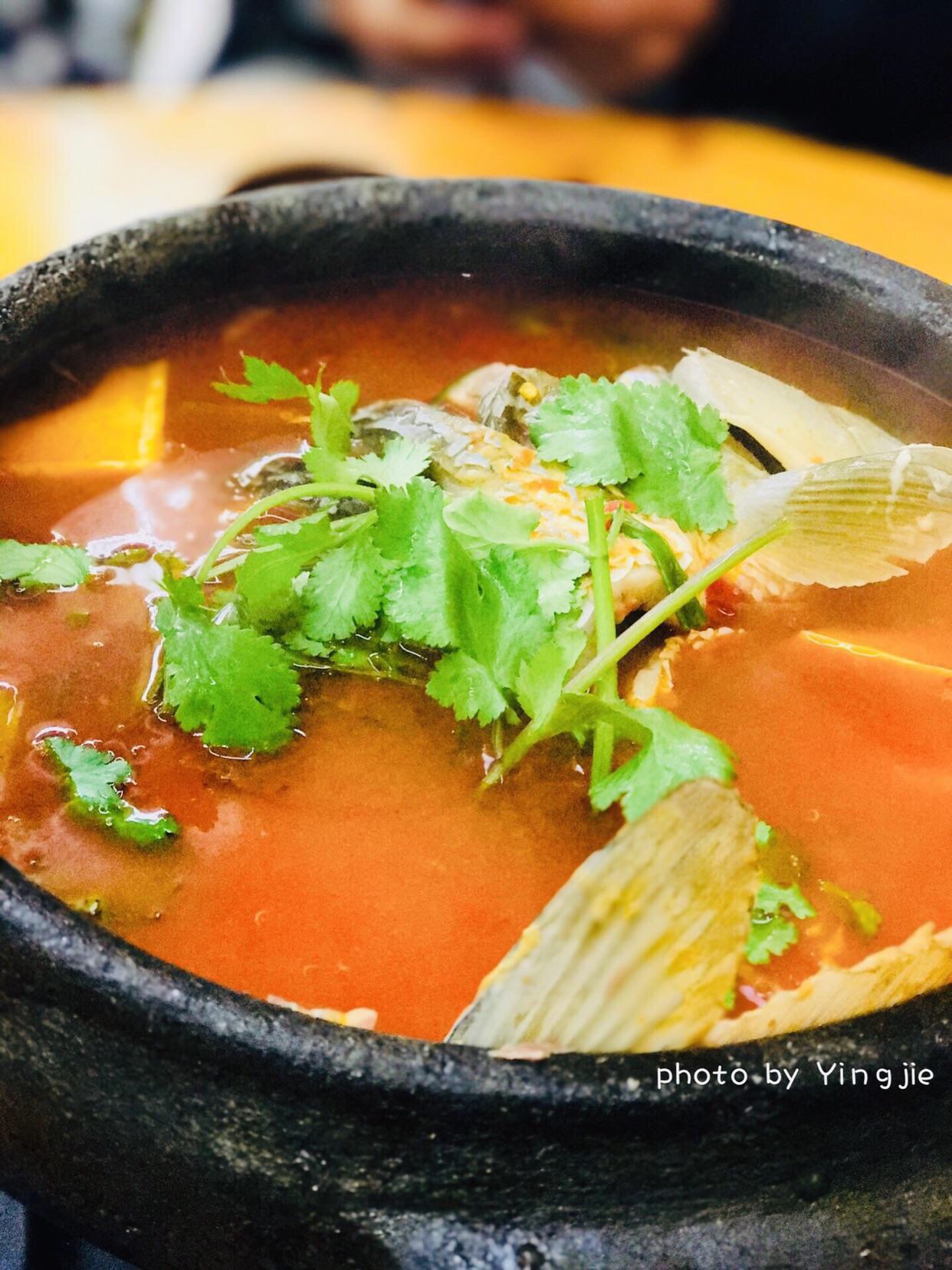 酸汤鱼味道很不错👍 在这里有“无辣不成菜”之说。苗族普遍喜食酸味菜肴,酸汤家家必备。苗族吃酸菜的历史悠久,跟他们深居高山,缺少食盐有关,平时很难买到蔬菜和肉类,所以每家都备有酸坛,用以腌制各种酸味食品。在制作酸味食品上,苗家人有整套工艺和吃法。