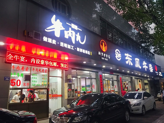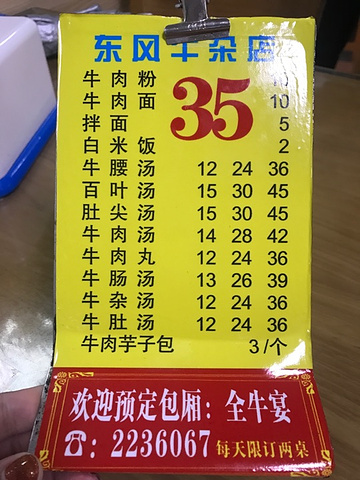 龙岩红色之旅-打卡当地人都推荐的牛杂店; 东风牛杂,前一天吃的是另外一家牛杂店,经当地人推荐说这家也不错。 门面大,座位多,夏天空调也很凉爽,食客很多生意超级好。先找位置坐,点完单要先去交钱,就等着吃啦。 #炒牛肉# 裹了地瓜粉的牛肉很嫩滑,一点也不老,重油的做法很下饭; #牛肚尖百叶双拼汤# 前一天另一家牛杂店卖完了,当时很遗憾这次一定要补上,实际有点失望,所以有些东西还是留个念想更好;百叶挺脆的,肚尖太老了嚼不动; #牛肉丸汤# 惊喜,没想到比潮汕的牛肉丸还要好吃,汤也是清爽而不失鲜美; #葱花煎蛋# 每桌必点,煎的外酥里嫩,很香; #芋子包# 客家特色小吃,外皮软糯香,里面包的香菇肉等,也很好吃; 服务:在这么忙的情况下,上菜快,收拾桌子也很快,挺不容易的; 牛肉丸还可以打包带走,另外可以提前预定全牛宴;