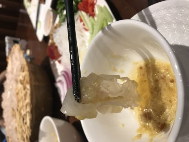 第一次吃潮州鱼生,感觉还可以接受,鱼生的口感跟在日本料理吃的鱼生差不多第一次吃潮州鱼生,感觉还可以接受,鱼生的口感跟在日本料理吃的鱼生差不多。店铺很干净舒服,老板娘会主动介绍吃鱼生的吃法,让客人慢慢体会鱼生的美味!