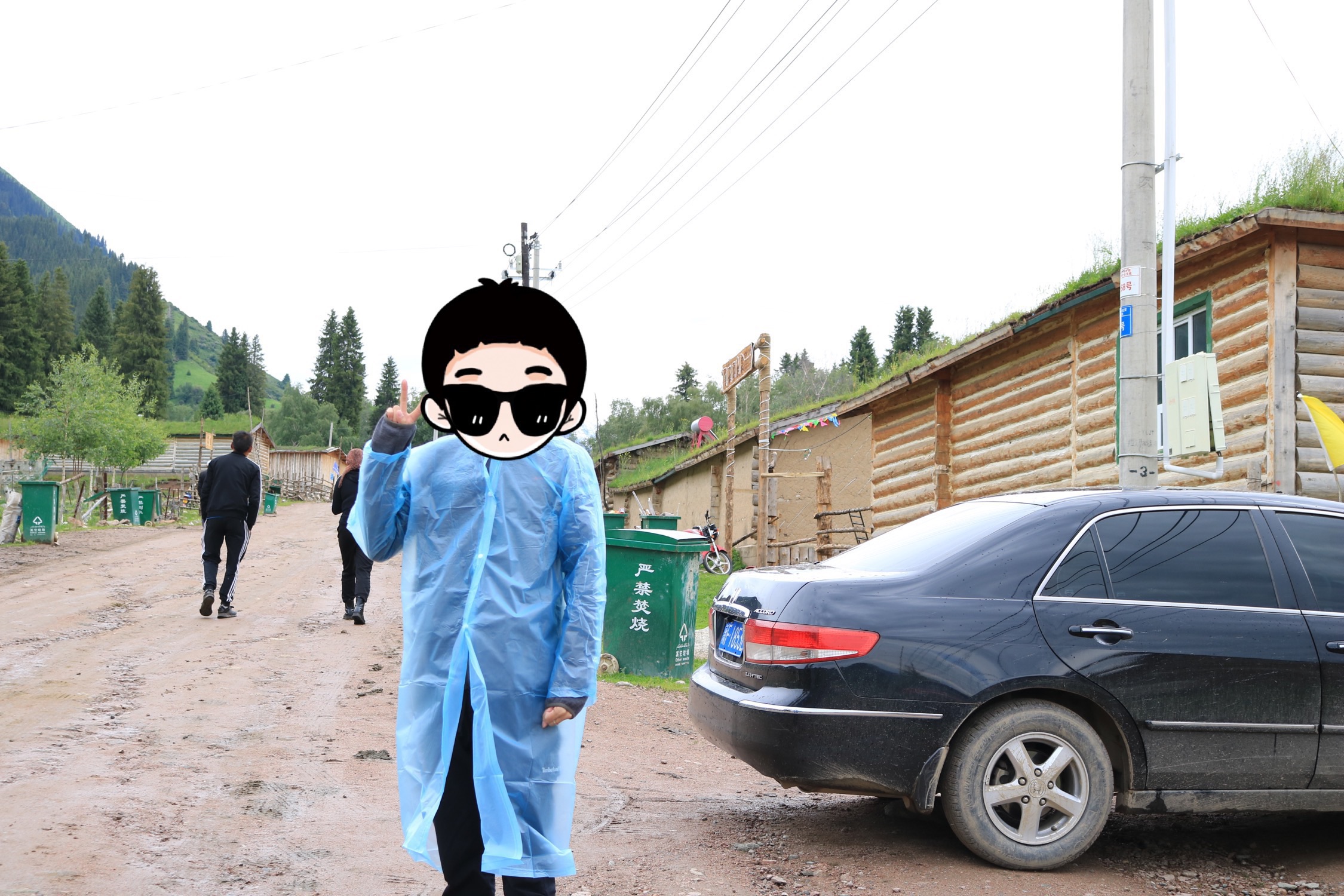 实在太冷了,拿着雨衣当外套挡风
