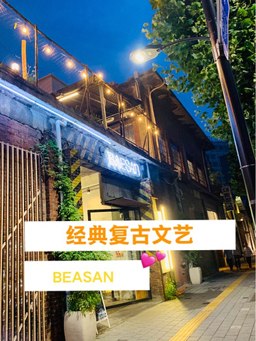 Baesan 今年才刚进驻圣水洞的咖啡街,是一家具有强烈独特风格的店。 内部空间很宽敞,由老旧斑驳的水泥牆、陈列大量画作、装置艺术与富有风格的摆设,桌子是由旧车头、废弃物建改造而成……喜欢尝鲜和欣赏艺术创作的人,可以来这复古怀旧文艺咖啡茶馆,这里还有酒可以点。 两个人两杯饮料一小块蛋糕🍰100➕ 🍵 营业时间:每日11:00-23:00 地址:首尔市城东区圣水洞2街 322-32 交通方式:地铁圣水站叁号出口步行5分钟