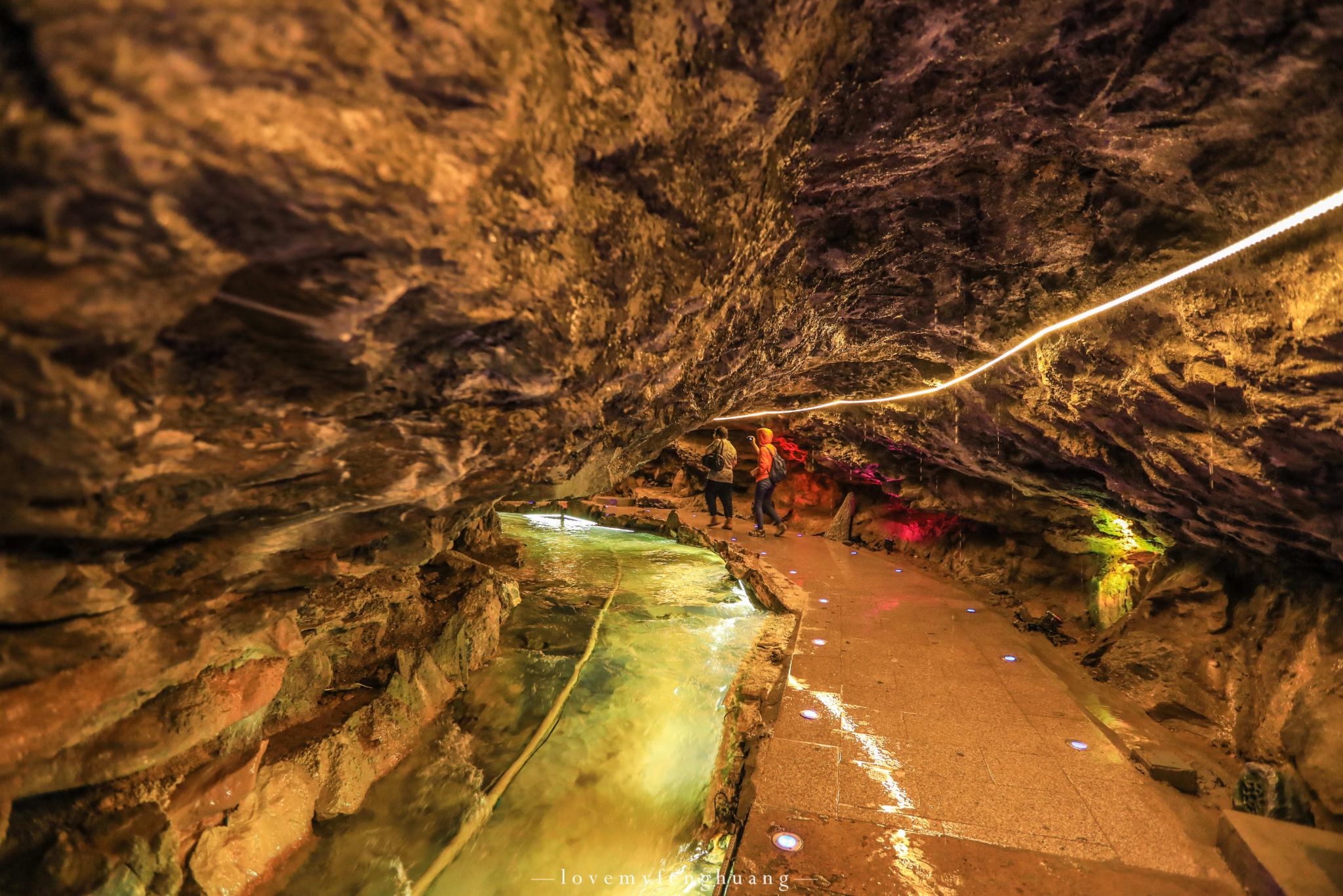 1991年双龙洞和冰壶洞打通,穿过狭长的栈道,两侧怪石嶙峋的钟乳石令人目不暇接,层次分明,旁边流淌着晶莹的河水,好似一条通往人间仙境的密道,前方有太多的惊喜等待着我们。