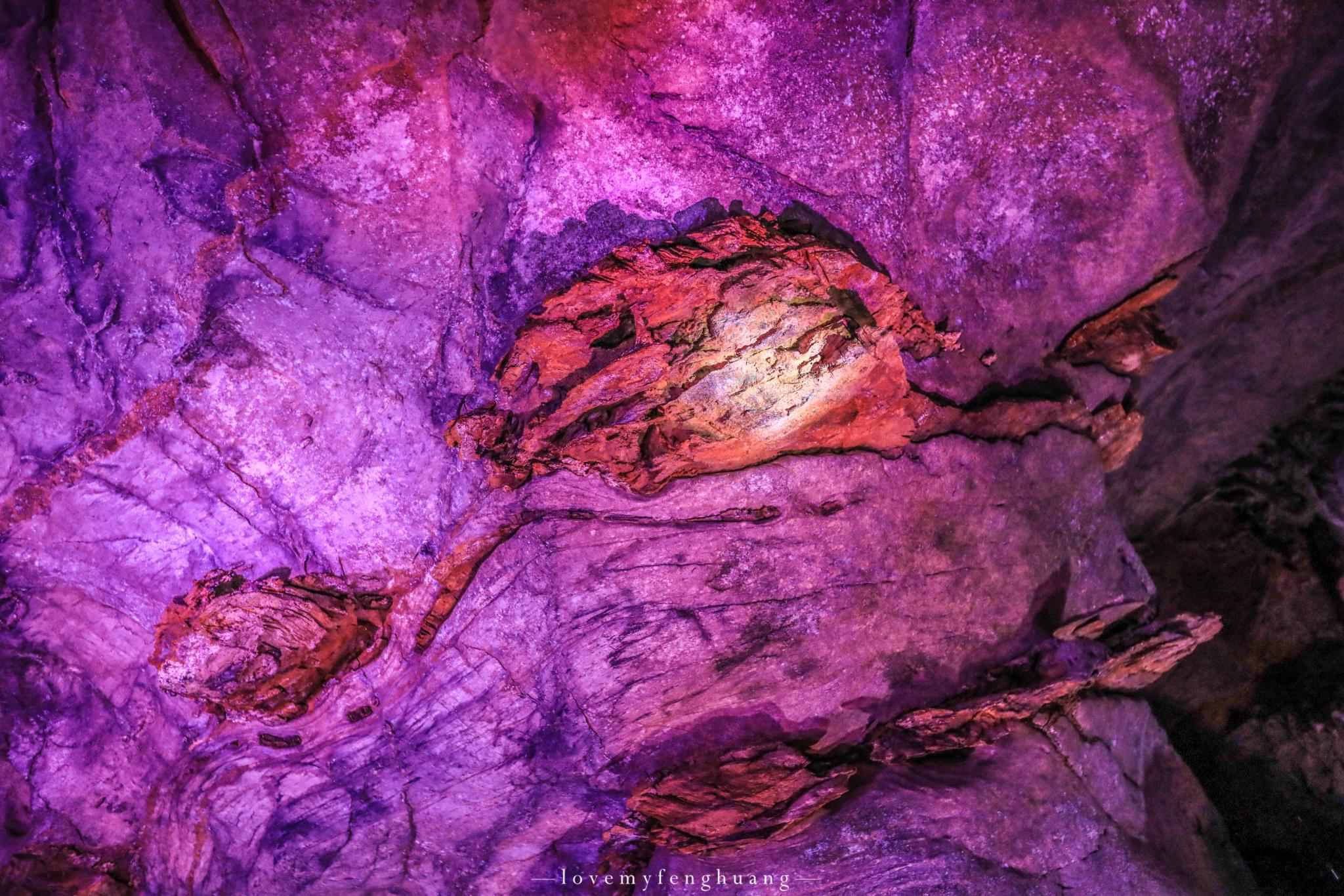 进入双龙洞的洞口,细心观察的你,一定不要错过抬头仰望洞口左右两个自然形成的钟乳石,酷似“龙头”,右边写着天洞的是“黄龙”,左边写着上龙洞的是“青龙”,都说神龙见首不见尾,那么溶洞内部是否还会有“龙”的足迹,此时的我更加期待进去一探究竟。