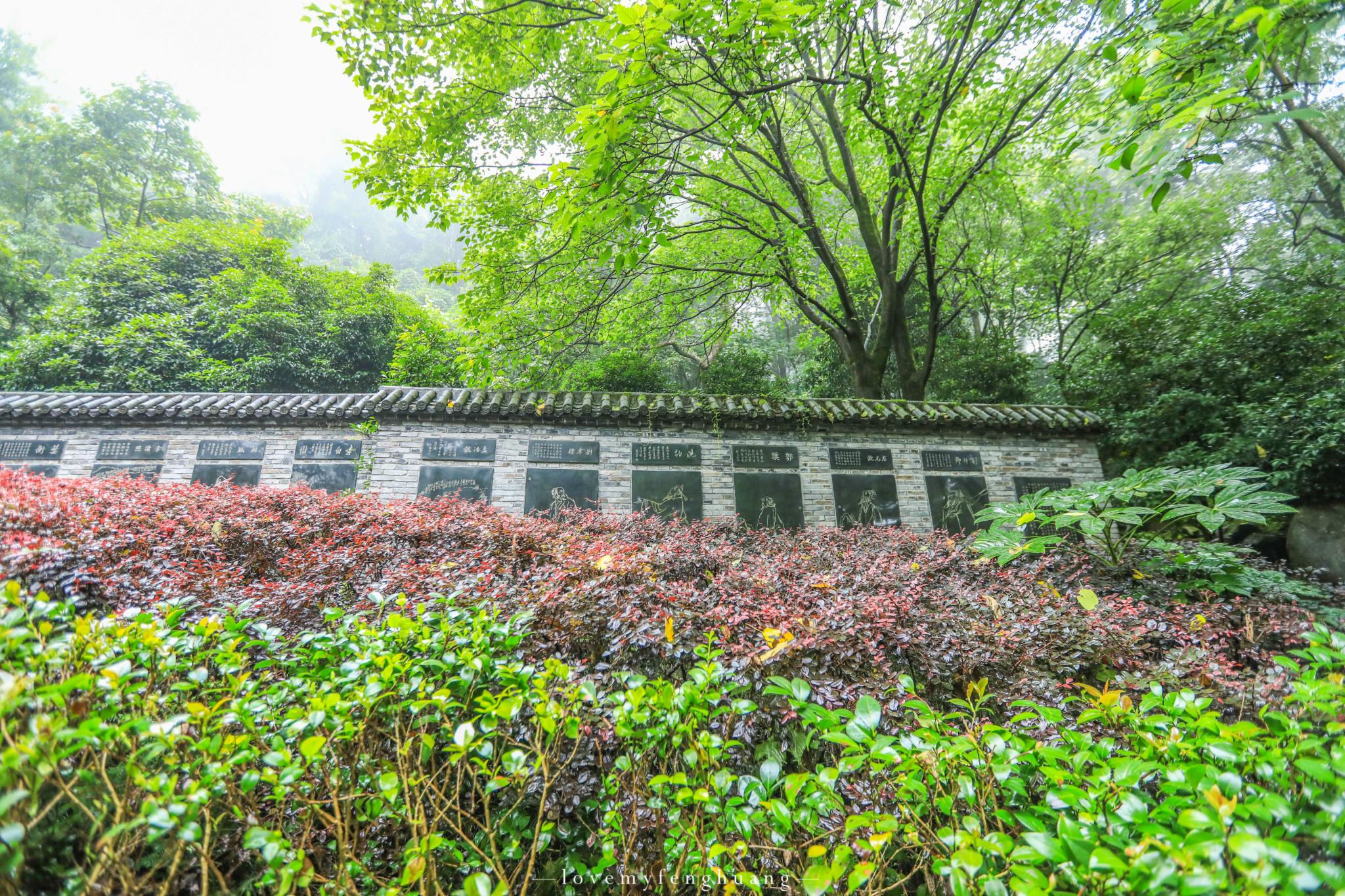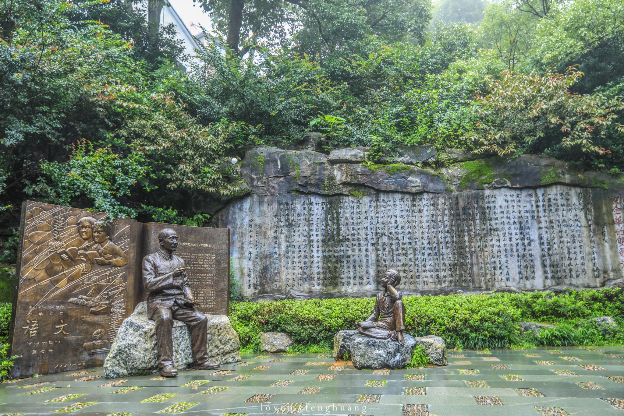 金华山历史悠久,文化底蕴深厚,奇特秀丽的自然景观为世人所钟情,历代众多文人墨客、社会名流慕名而来,留下了大量诗文书画和摩崖石刻,碑廊谨选了其中20位绘像刻碑,陆游、李清照、郭沫若等等。