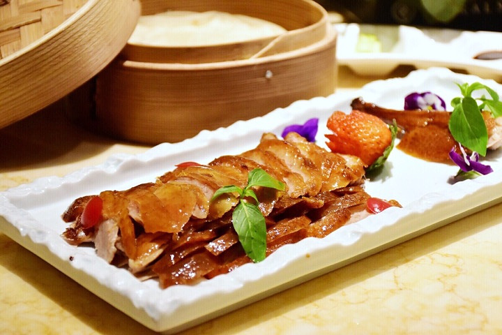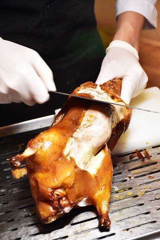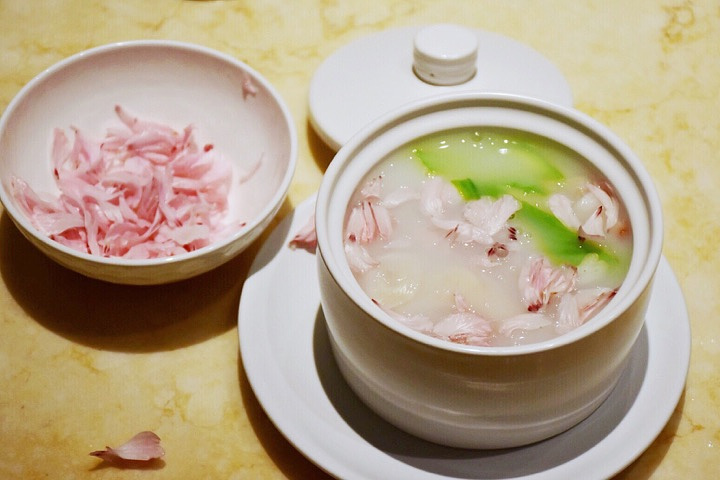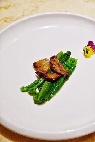 偶尔逛菜市场的时候,看到小摊上有贩卖这种小花,粉嫩嫩,比我的少女心还粉嫩。一直以为那只是餐品的装饰点缀,从来没想到,有一天我的嘴竟然连那粉嫩嫩的鲜花都不放过。不得不说还不错。 「粥水翅针贵妃蚌」有了粉嫩粉嫩的木槿花点缀,让这道本应该以食材取胜的粥水,凭借她的颜值惊艳了全场。焯过水的贵妃蚌、鱼翅和芦笋,倒入滚烫的米汤,撒上木槿花,就趁热享用吧。 除了这道充满春天气息的粥水,其他的菜品也都不错吃呢!且听我慢慢道来。 「荔枝伊比利亚火腿沙拉」沙拉很多的店都有,但我特别喜欢这家带有着红菜头香的油醋汁!特别有灵魂!酸甜可口不油腻!最是适合炎炎夏日没有胃口的我们!还别出心裁地加入了现剥荔枝肉,香甜的口感与伊比利亚火腿的咸香。 这里的招牌,其实是一只鸭,一只需要提前预约才能够吃上的北京烤鸭!讲真,这烤鸭和我在北京某店吃的差不多。而且这里可以一鸭三吃! 一吃鲟鱼籽酱北京烤鸭,选用烤鸭鸭胸的表皮,面包片上叠上烤鸭片,再放上顶级鲟鱼子酱,造型精致,入口既有鸭皮的酥脆,又有鱼子酱的高端的感觉!将烤鸭这道菜,又提升了一个level!对了,一只鸭只能片10片! 二吃皮鸭卷,搭配了山楂条,大葱丝,甜酱,白砂糖,青瓜五种配菜,大家根据自己的需求搭配。 三吃鸭架骨,被厨师片完的烤鸭架还是有挺多的肉肉,可以选择打包回去配啤酒! 丝瓜挺多店都有,到这家的樱花虾花胶翡翠丝瓜我真的挺喜欢的!花胶烩丝瓜,金黄色的汤汁有够下饭! 黄鱼面线不稀奇,但这家的黄鱼面线会让我印象深刻!因为这里的黄鱼还铺满了q弹的虾滑! 别看这是中餐厅,还有一些看似西式的奶黄酱焗雪花牛肉,这对火候的把握,对食材的运用搭配,口感丝毫不会输西餐厅! 云南松茸炒台湾山苏 姜汁冰淇淋,这真的是一道能让你吃下盘子的冰淇淋!因为装着冰淇淋的容器是半个椰子壳,可以挖着椰子配冰淇淋!最好带着点花生碎,口感很丰富!初入口是冰淇淋的丝滑,慢慢姜汁的辣裹住味蕾,咀嚼后的花生碎香,椰肉香在舌尖缠绕! 『上饍•中国厨房(建发JFC品尚中心店)』 地址:厦门市环岛东路JFC品尚中心B馆4楼