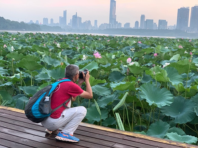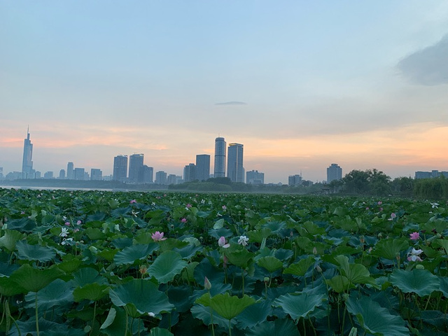 傍晚的玄武湖畔,荷风轻盈,蛙鸣声脆,沿湖游走,好不惬意