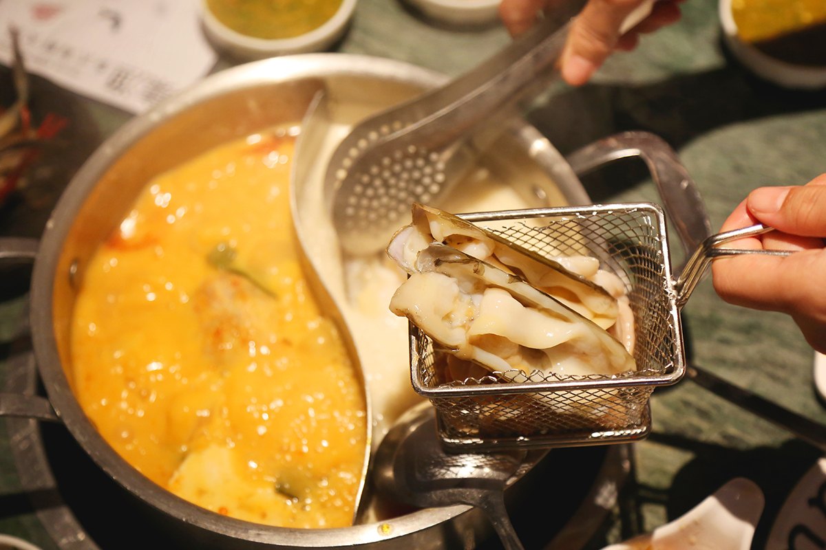 我们一共三个人,点的是三人海鲜套餐,推荐六头鲍,超大,有趣的事向鲍鱼滴柠檬,鲍鱼就会来来回回的动,也是超有趣。直接把鲍鱼放进锅里煮,煮开之后服务员会拿到后厨用刀切块,再继续食用。
