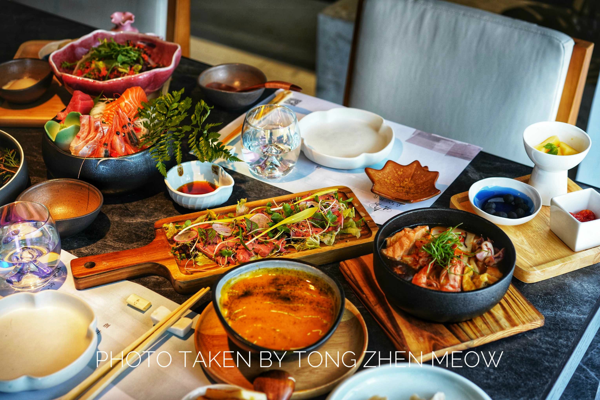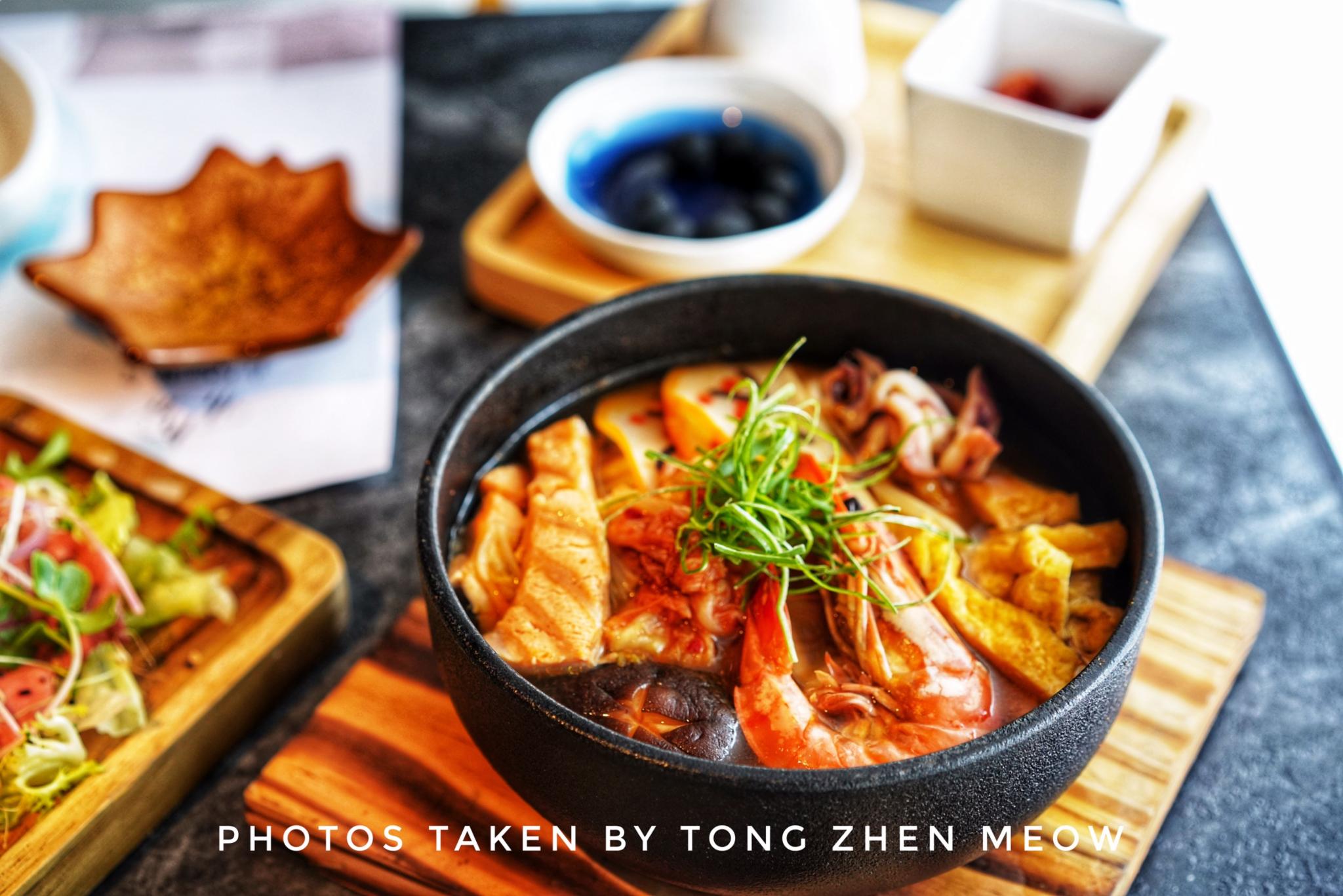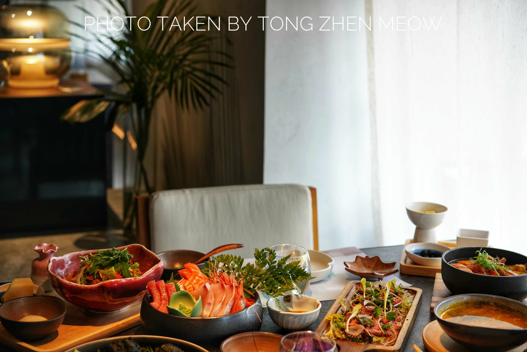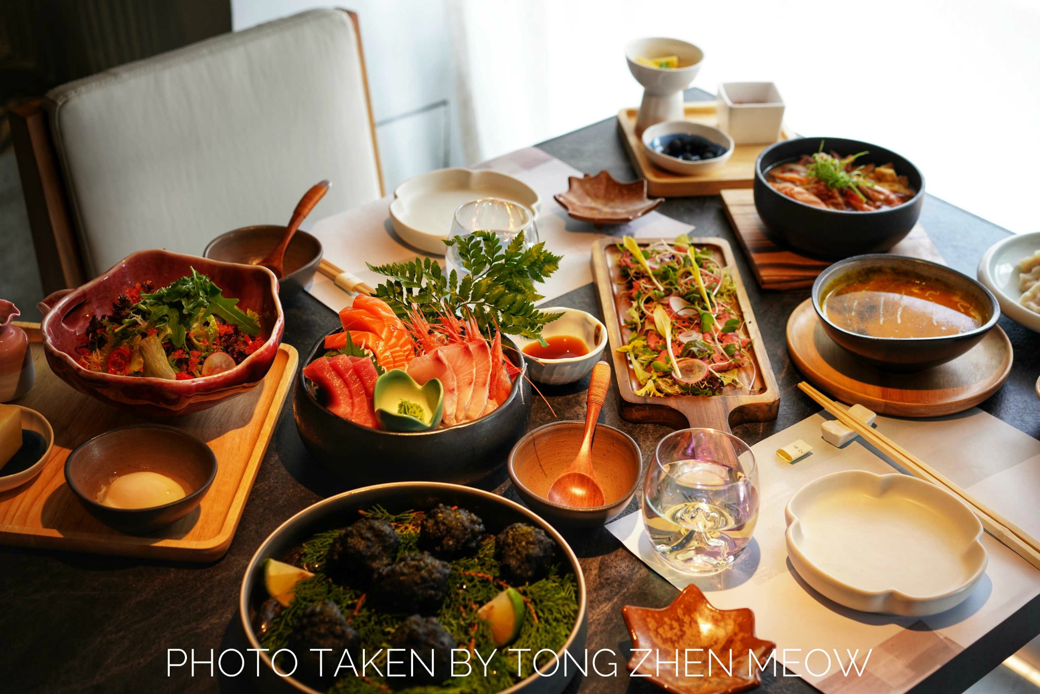 森空·和食这家店没有太多的日式气息,反而是融入现代简约泼墨风,帕尔玛凯撒沙拉,沙拉酱、温泉蛋、芝士都