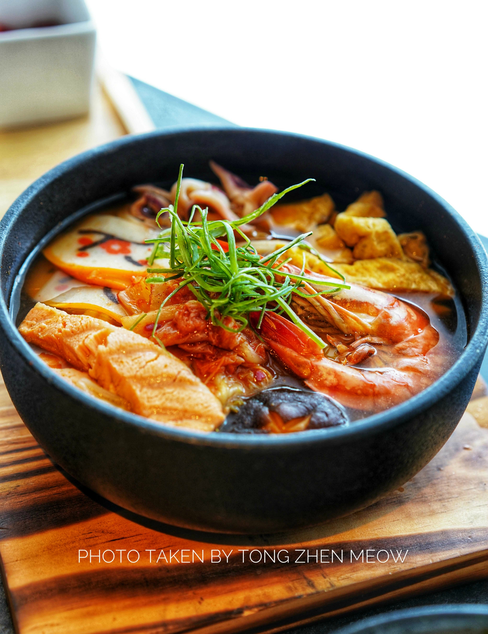 海鲜泡菜乌冬锅 ,我个人觉得乌冬面怎么煮都好吃,但是在我看来,配料味道才是考量这份乌冬是否好吃的因素,泡菜的口感好坏也会影响一份汤的味道。微辣甜的泡菜配上大虾🍤的鲜味,让面汤的味道变得异常丰富。